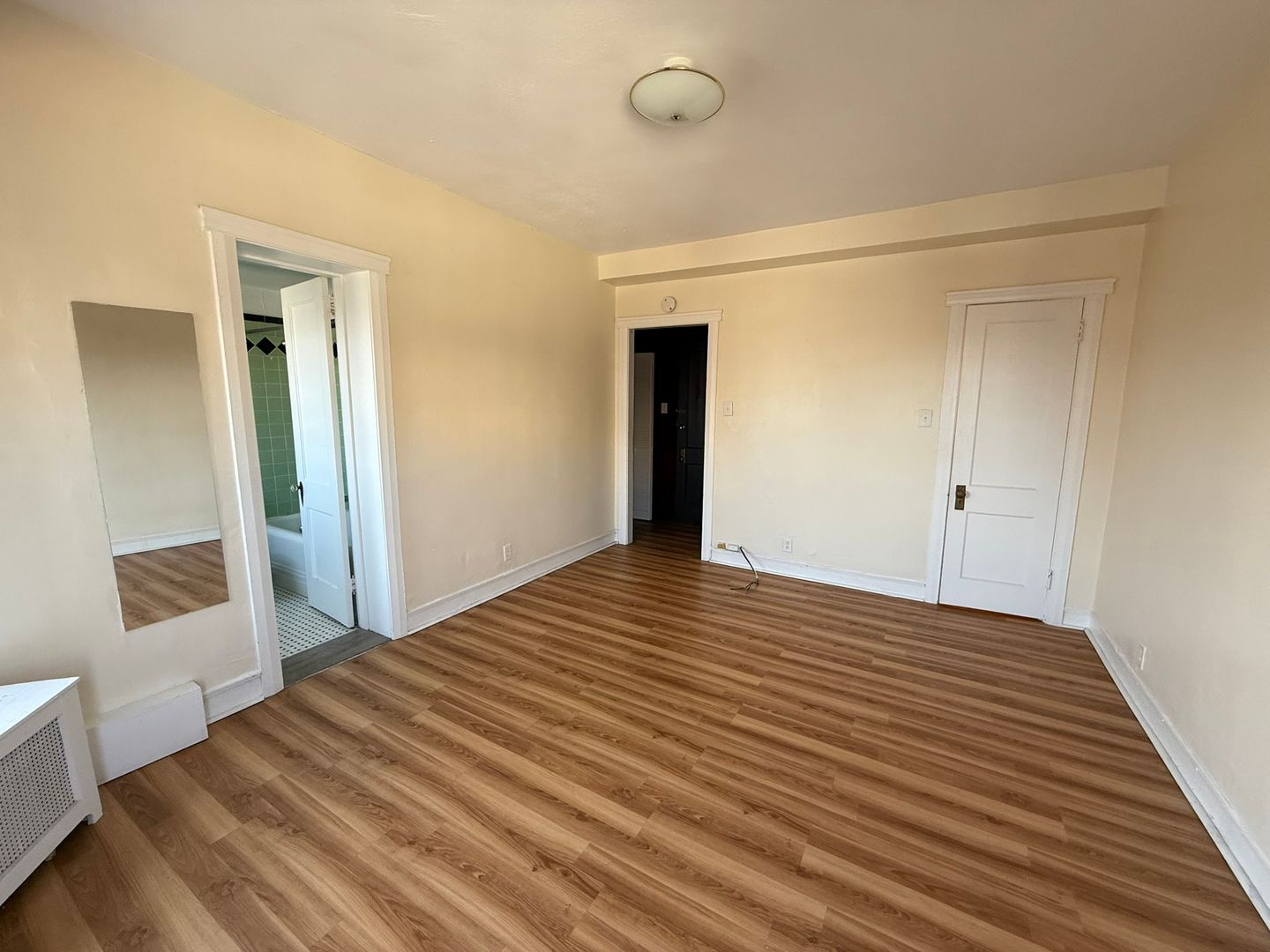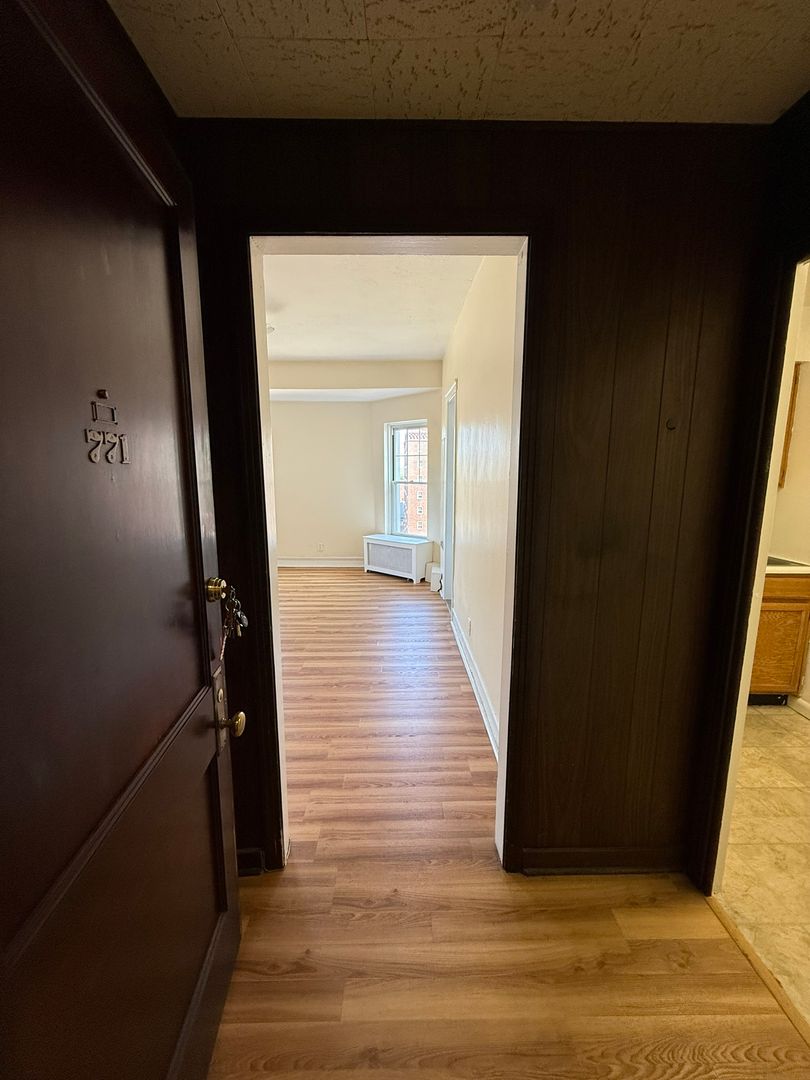 This studio apartment features lots of storage space, natural light, and plenty of style and character.