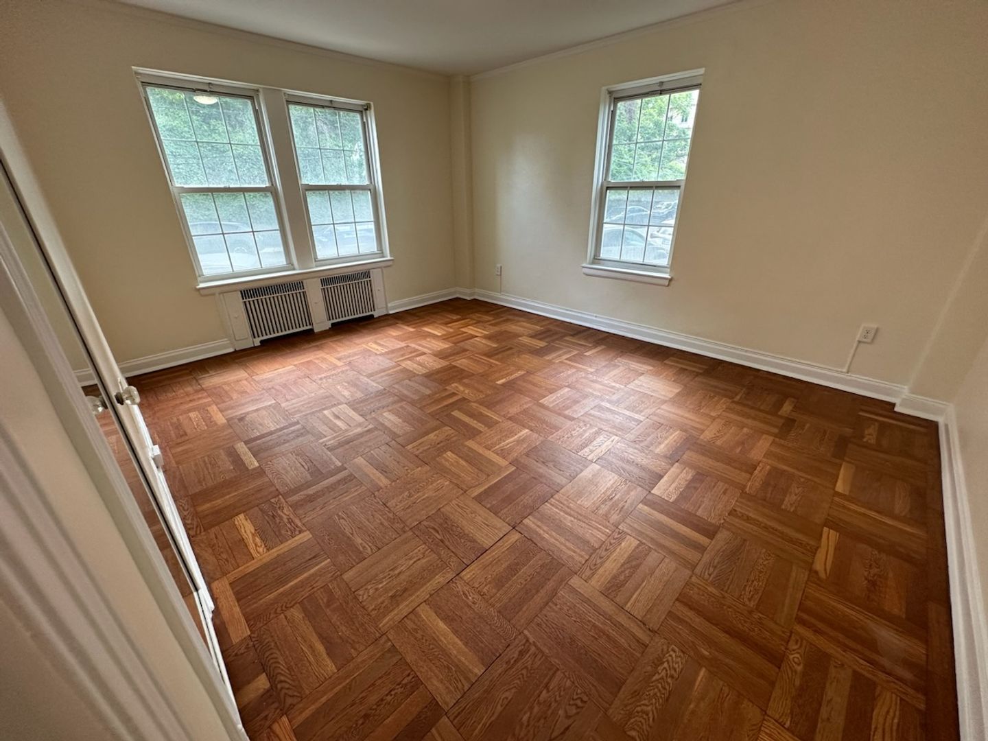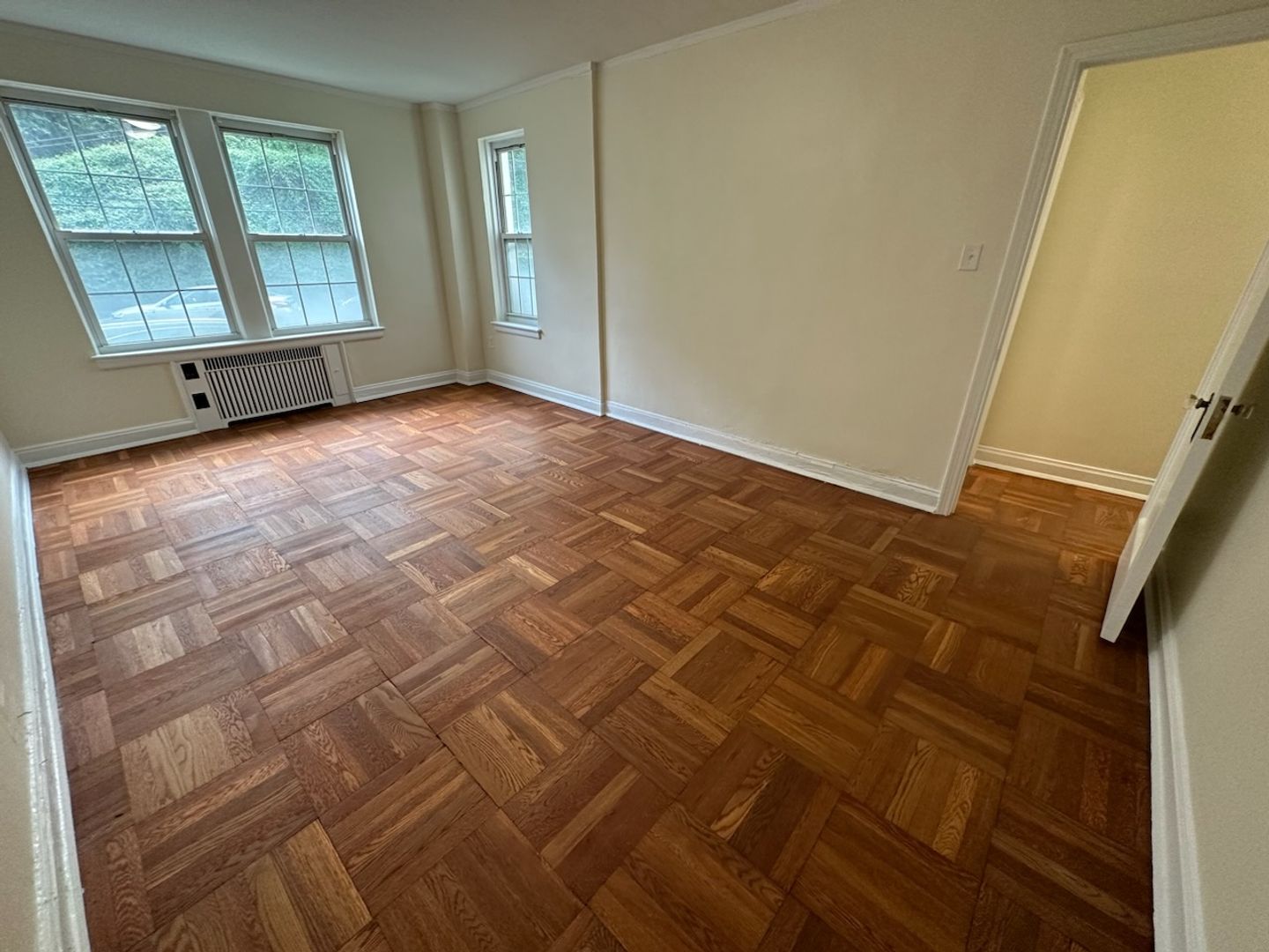 This spacious 2 bedroom, 1 bath apartment is a great place to call home. It features plenty of space for storage, lots of natural light and beautiful views of the city. The apartment also features hardwood floors and high ceilings and is located on the lobby level.