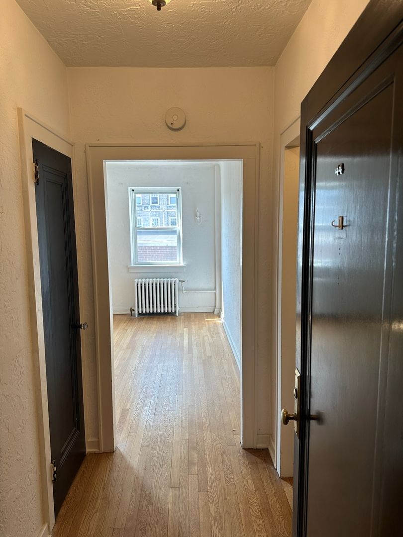 This studio apartment features lots of storage space, natural light, and plenty of style and character.