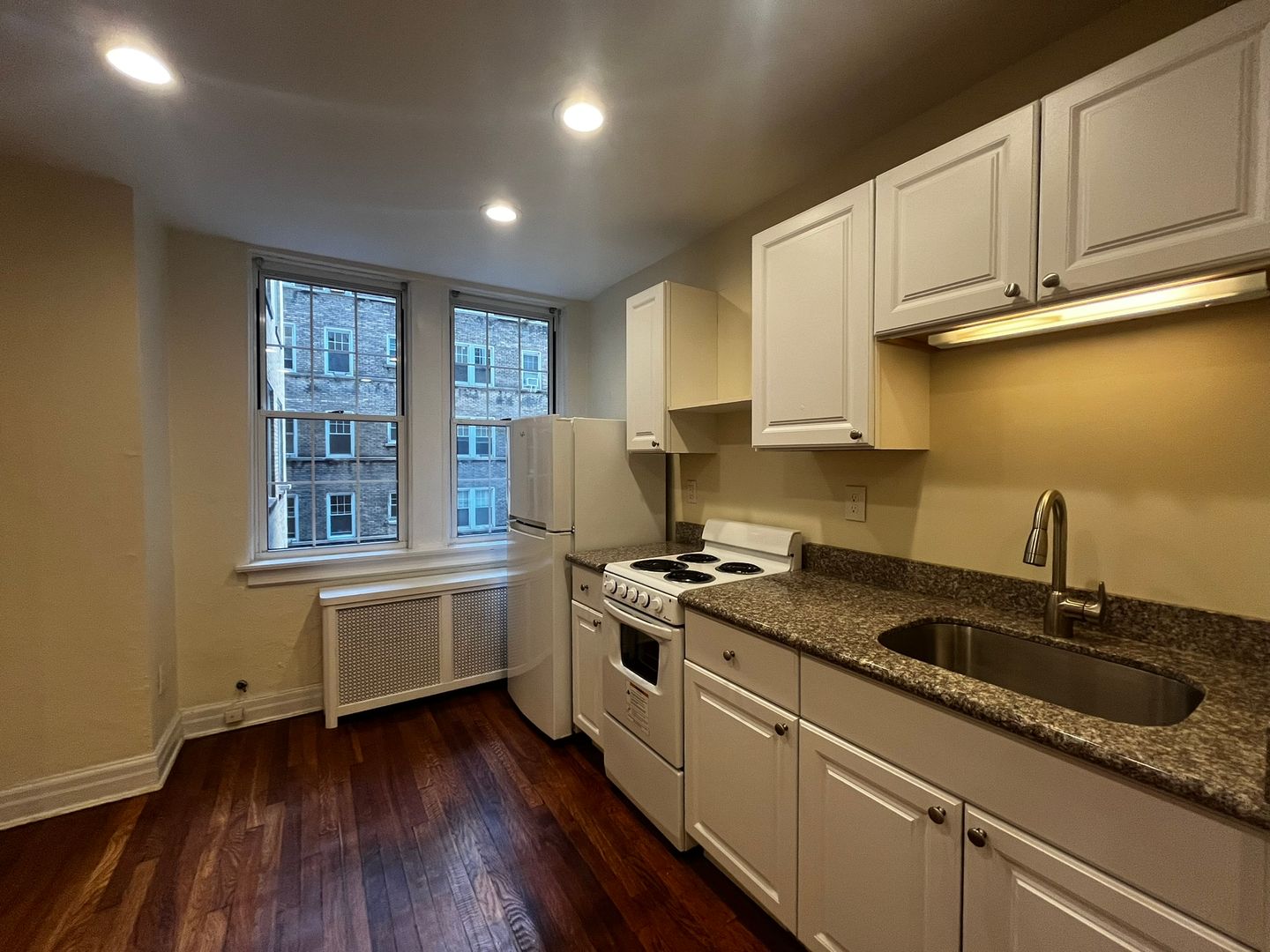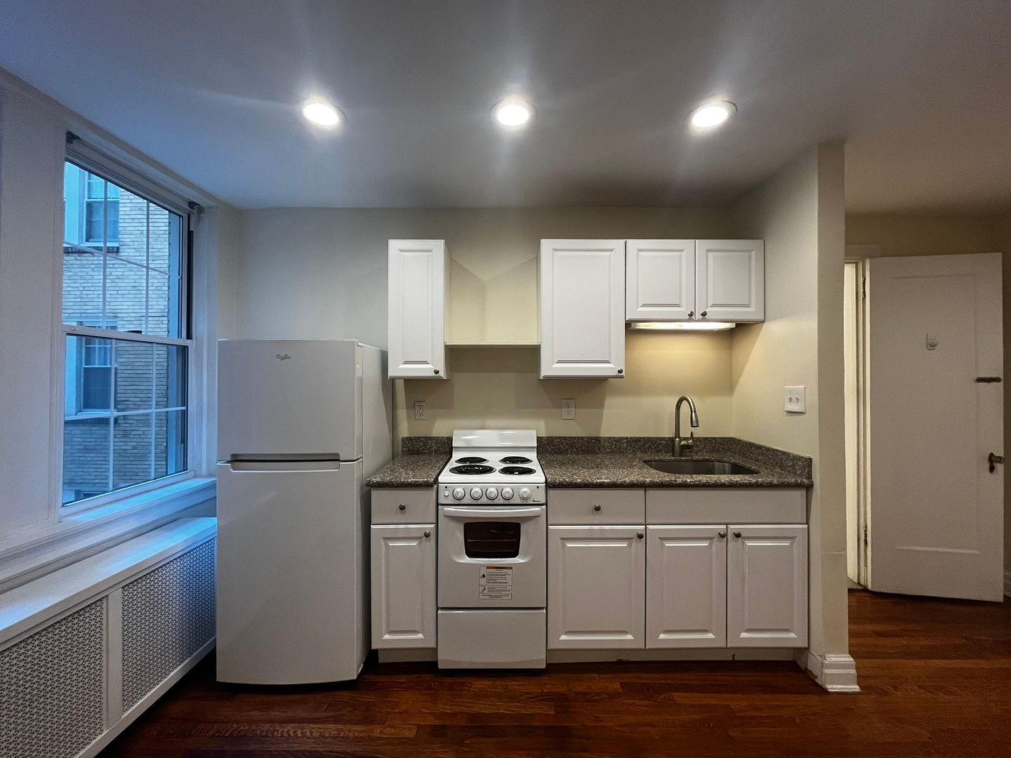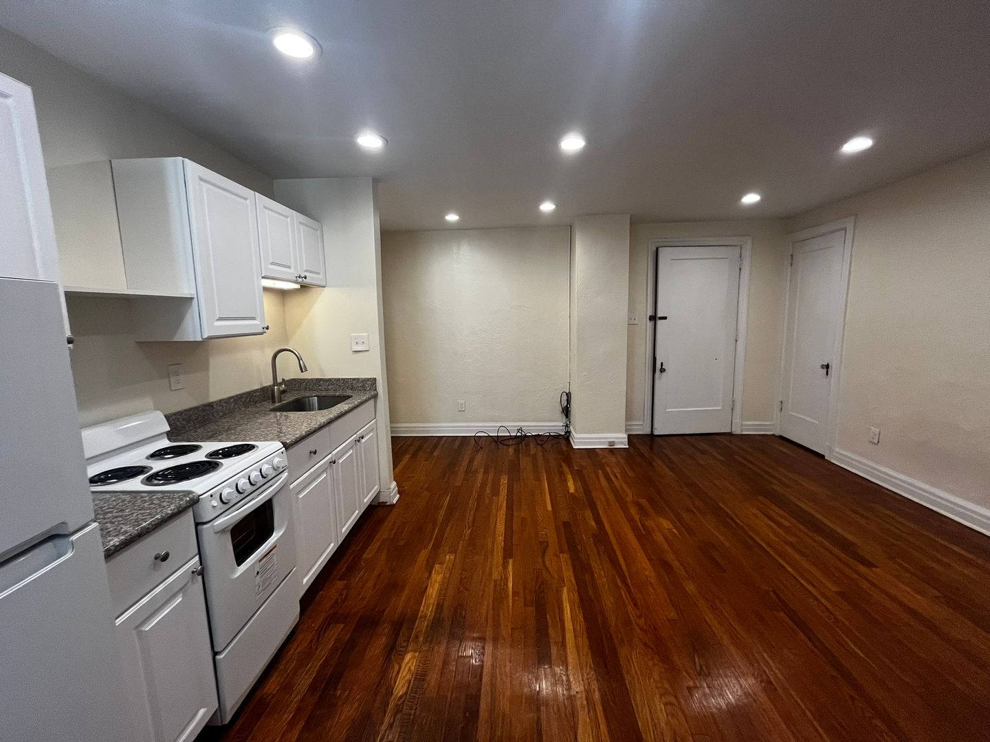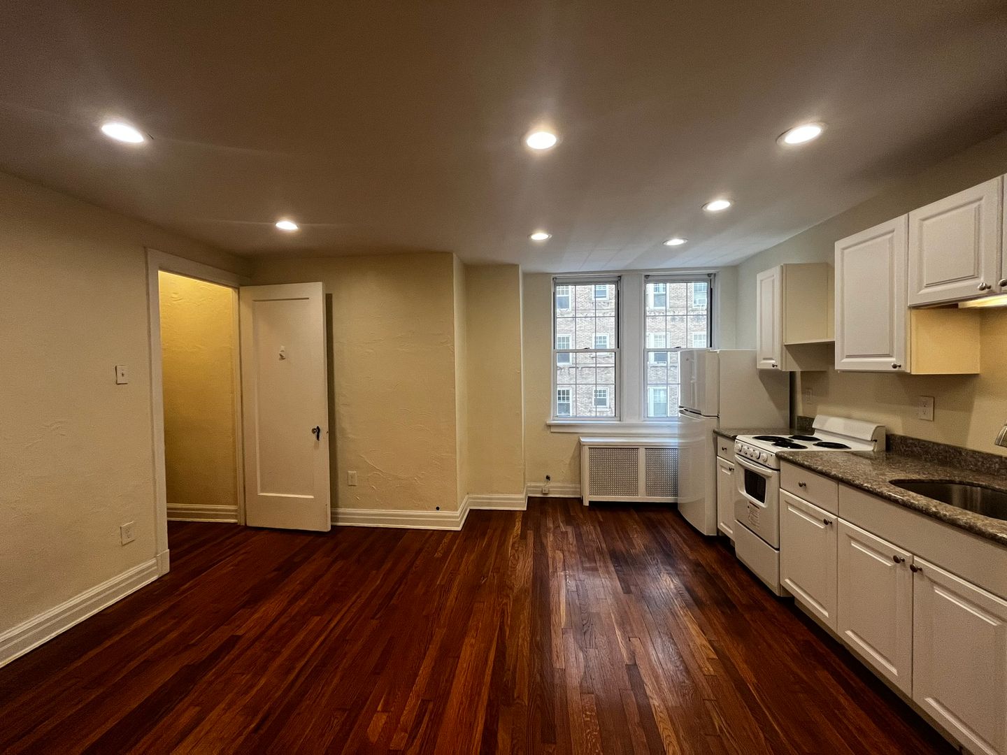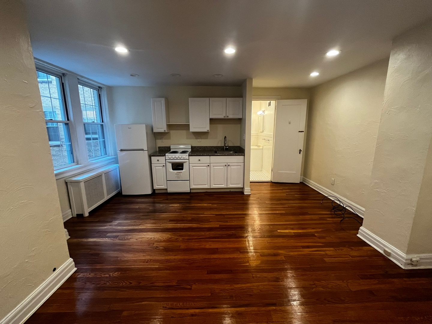 This studio apartment features beautiful hardwood floors and lots of natural light.