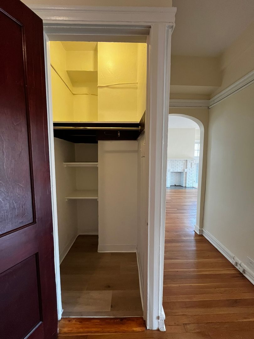 This 1 bedroom, 1 bath apartment features lots of storage space, natural light, and plenty of style and character.