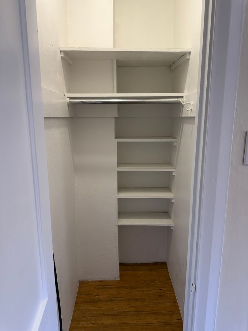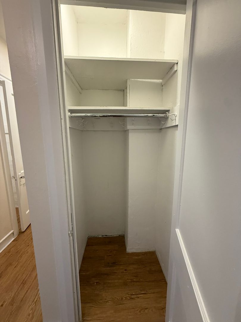 This 1 bedroom, 1 bath apartment features lots of storage space, natural light, and plenty of style and character.