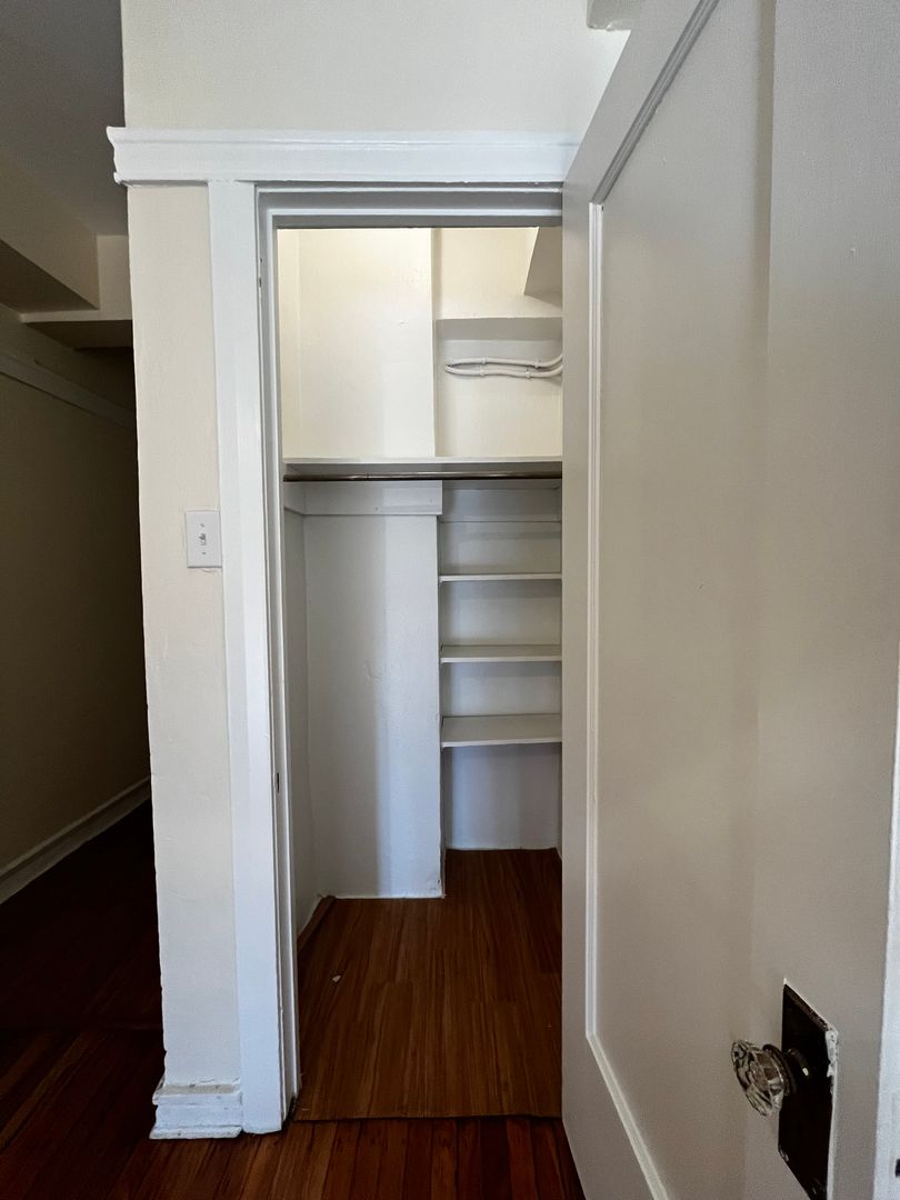 This 1 bedroom, 1 bath apartment features lots of storage space, natural light, and plenty of style and character.