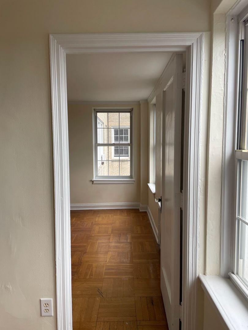 This 2 bedroom, 1 bath apartment features ample space for roaming and storing your belongings. You’ll love the natural light and beautiful views from the large windows. The apartment also features parquet floors and high ceilings.