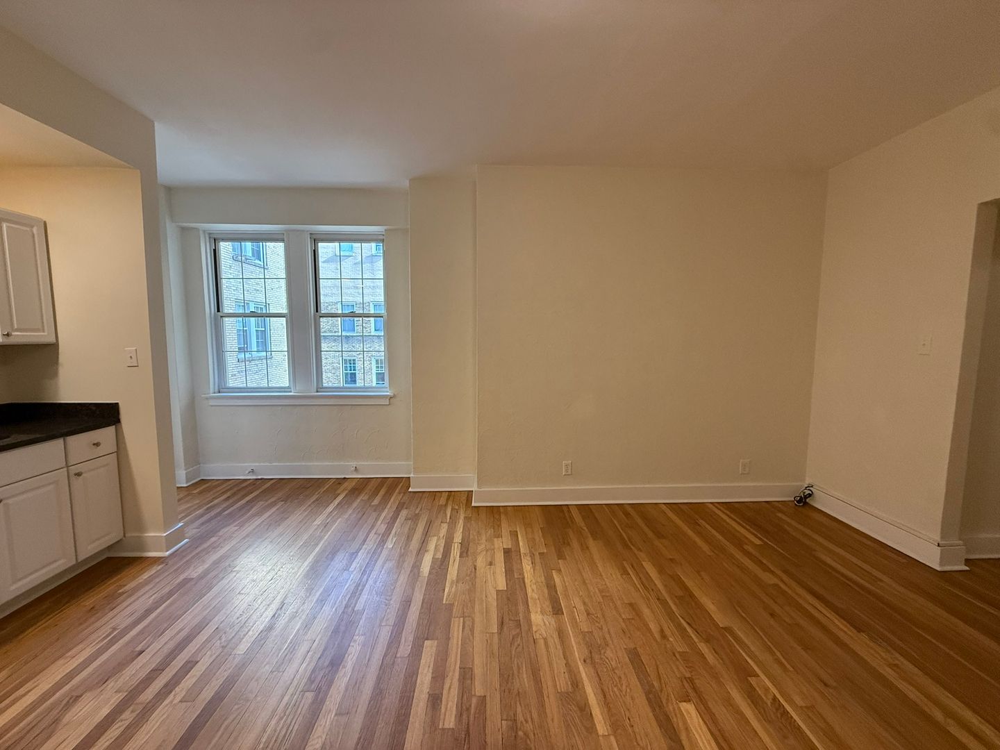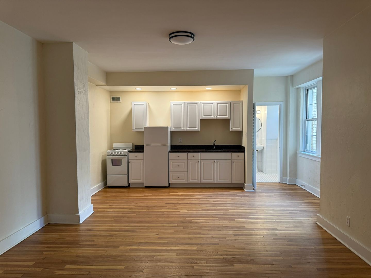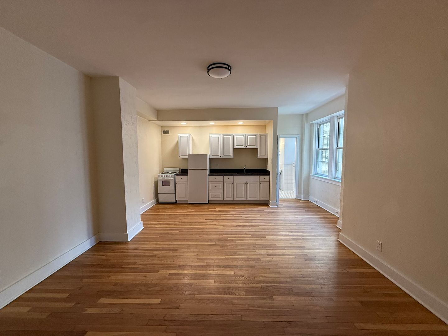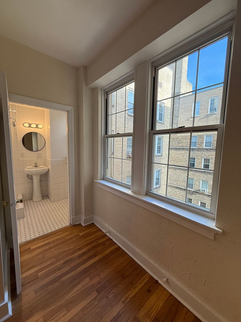 This studio apartment features beautiful hardwood floors and lots of natural light.