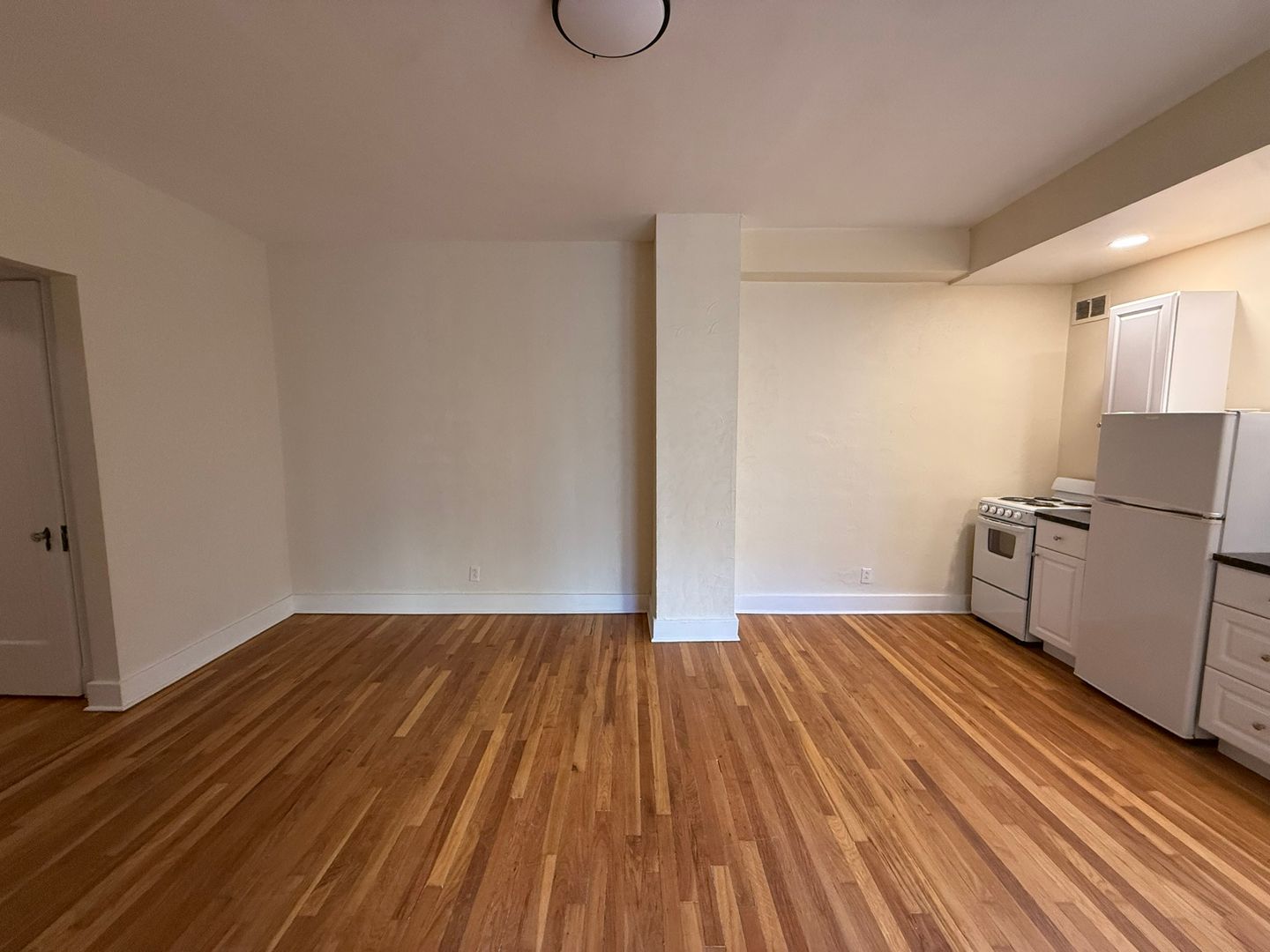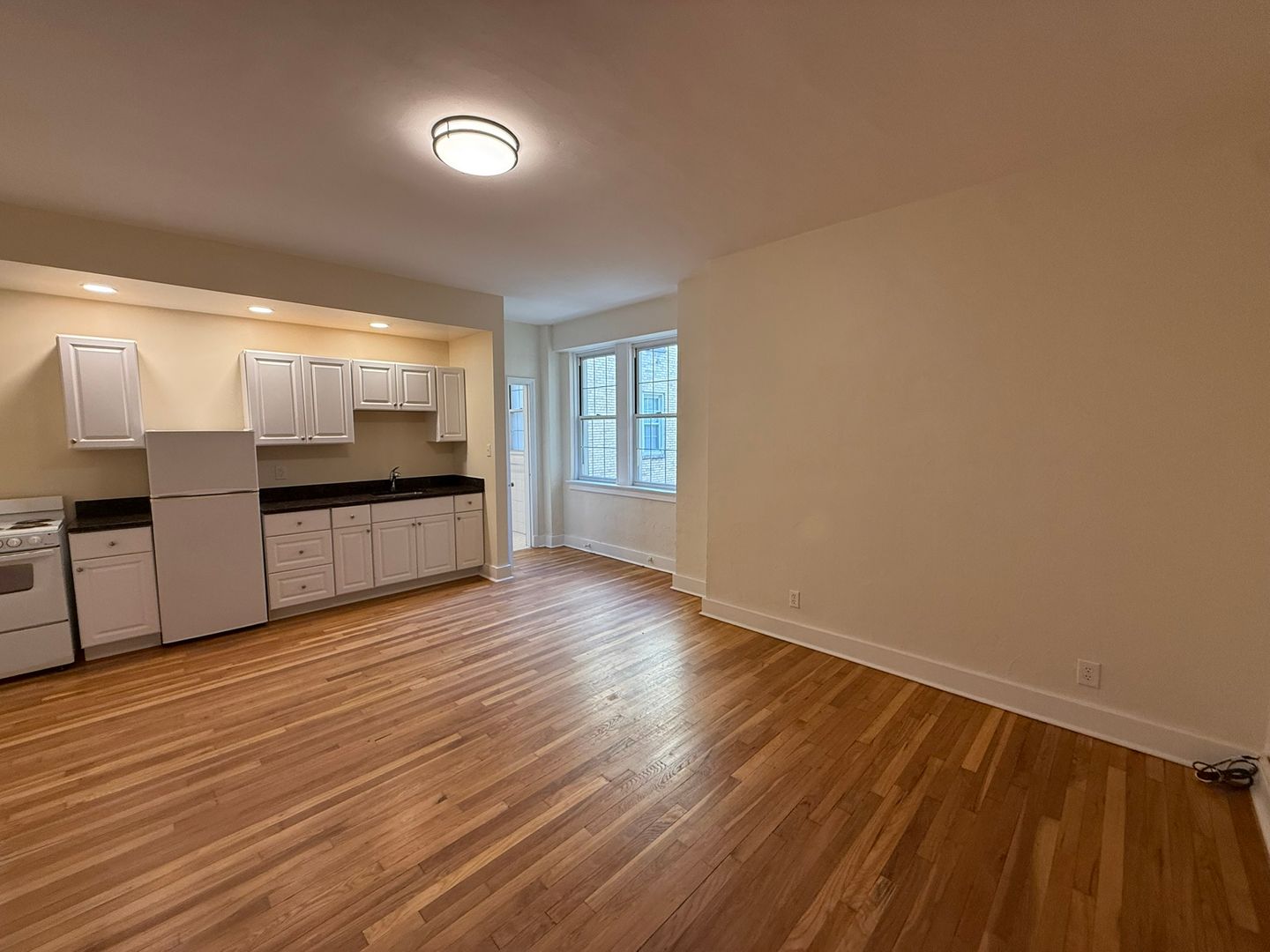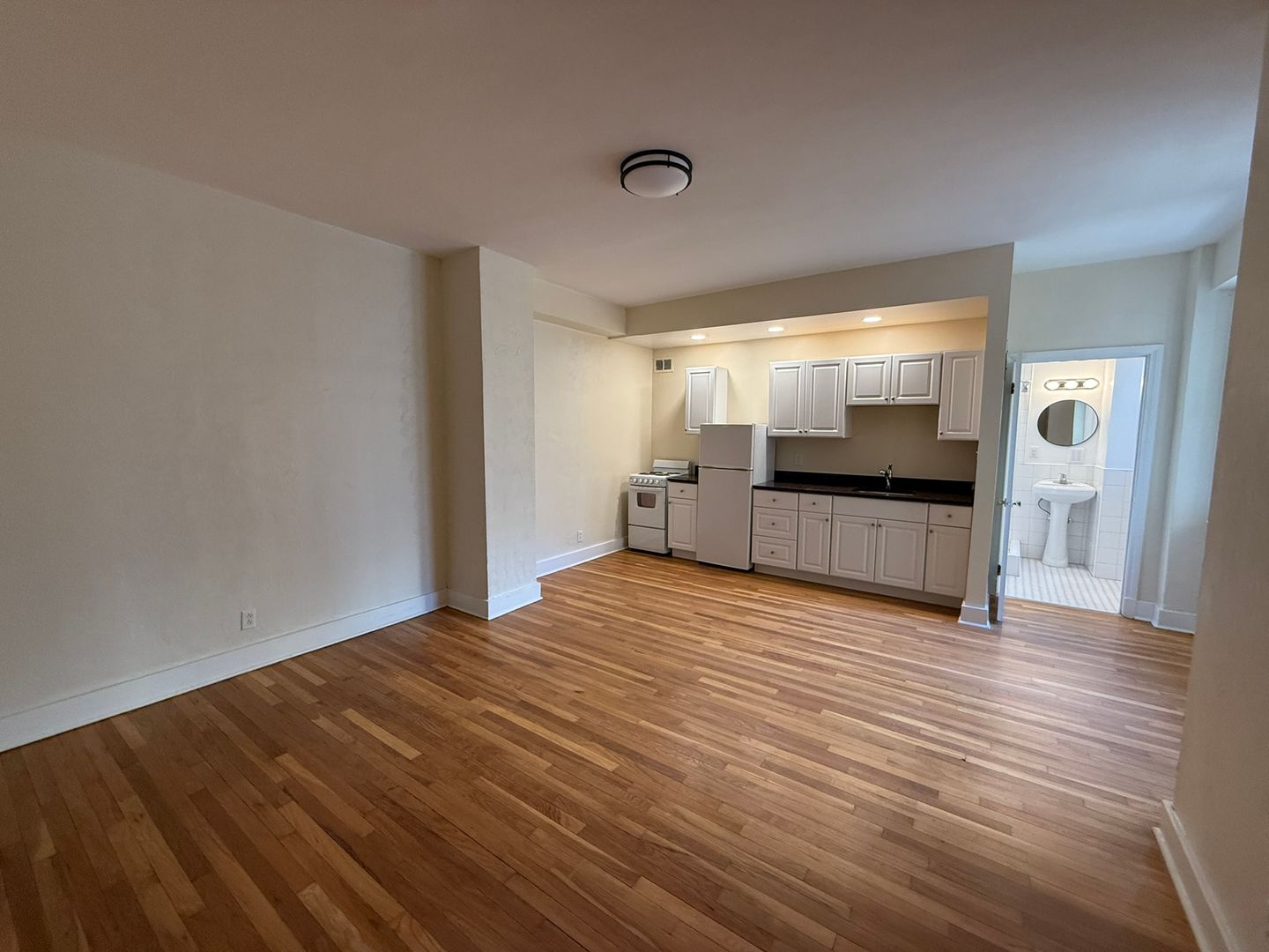 This studio apartment features beautiful hardwood floors and lots of natural light.