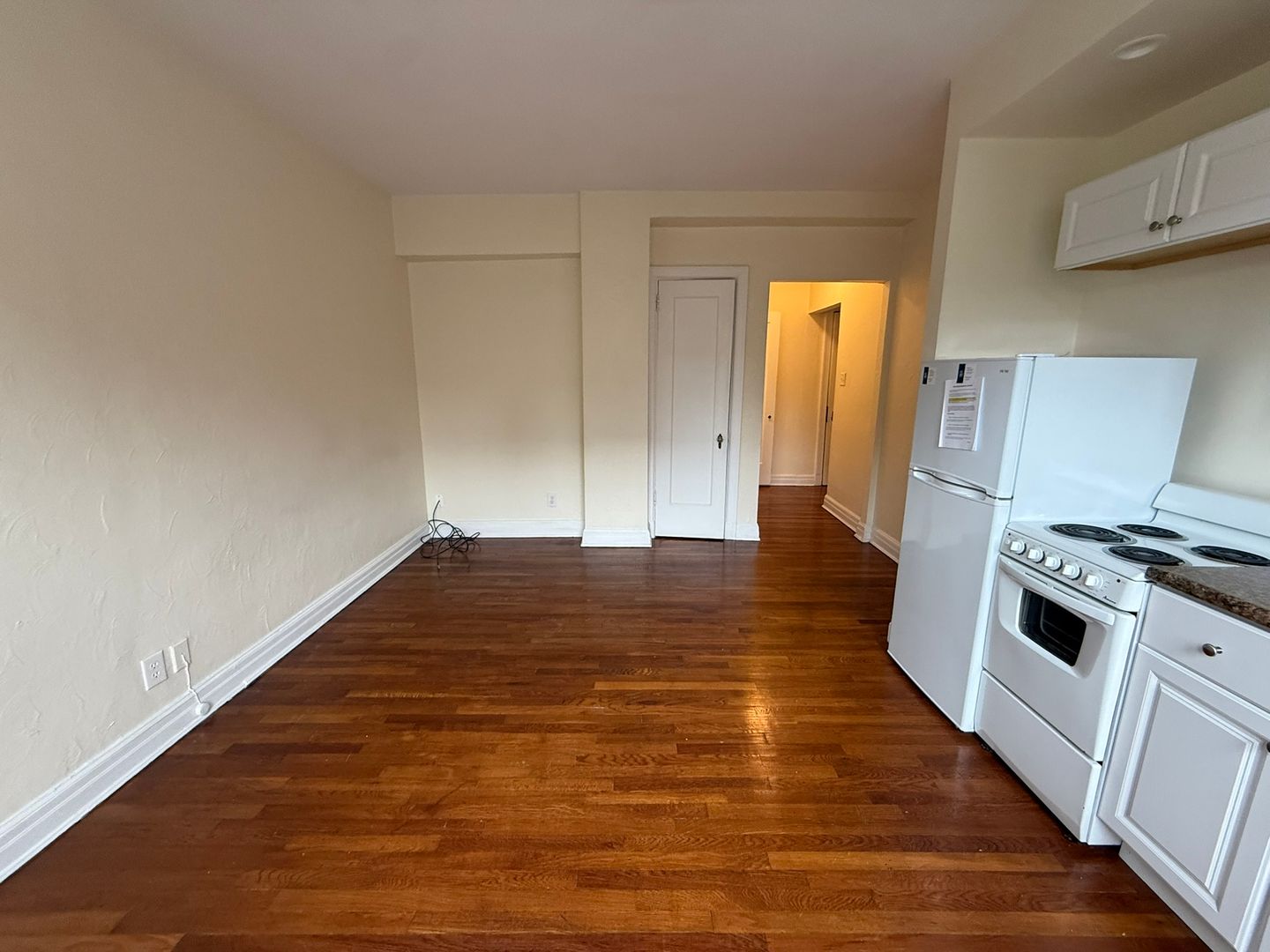 This studio apartment features beautiful hardwood floors and lots of natural light.