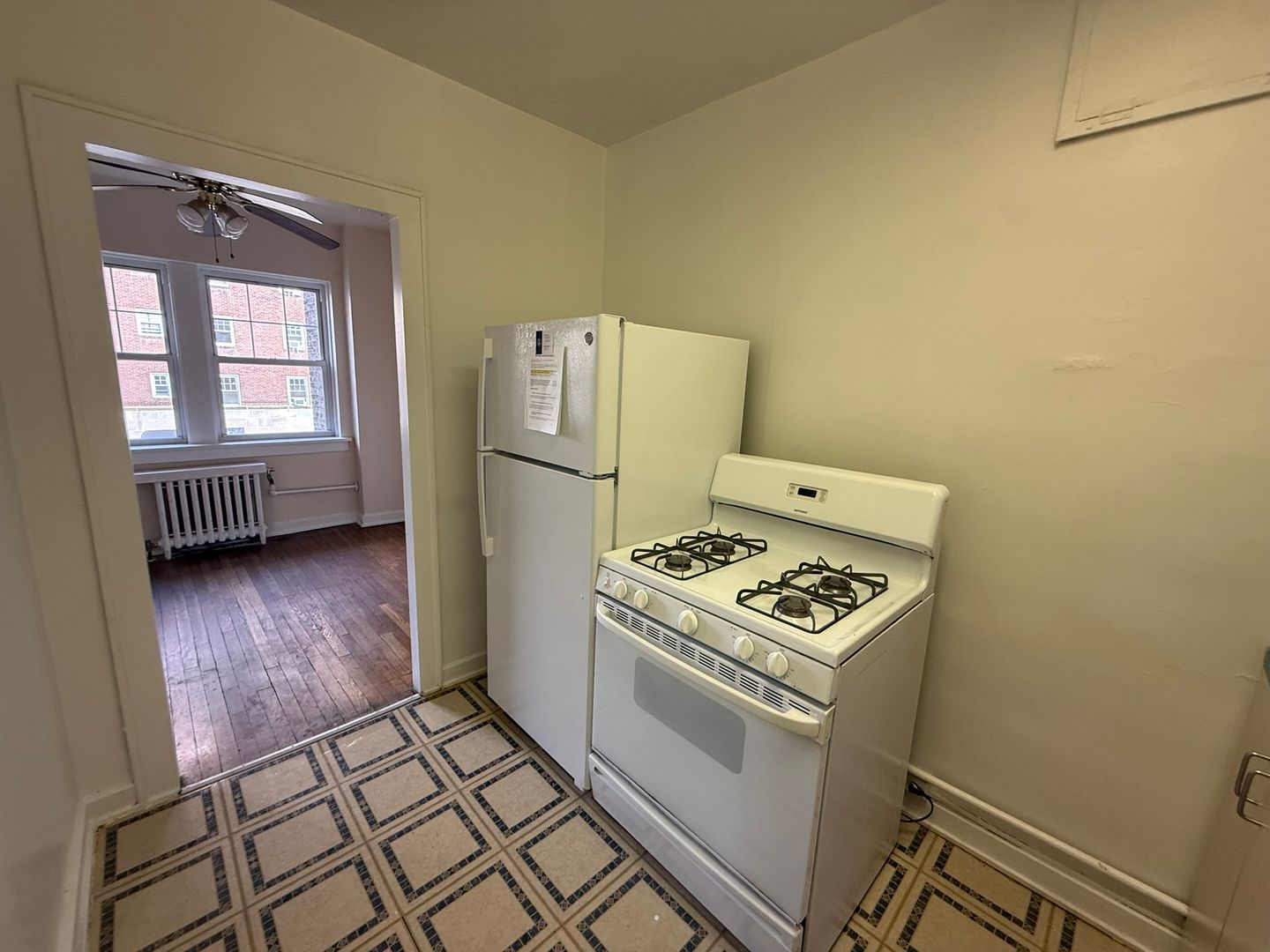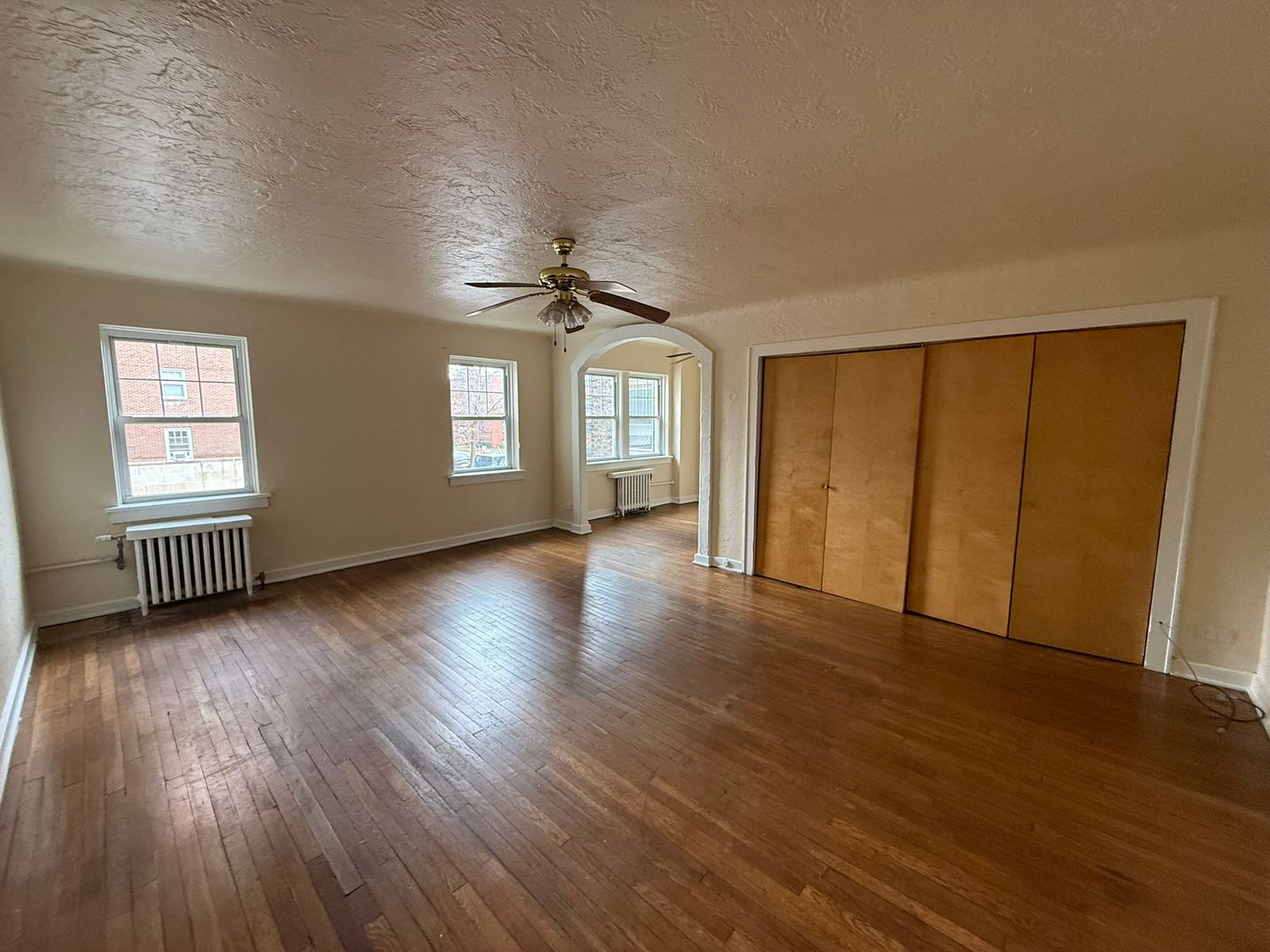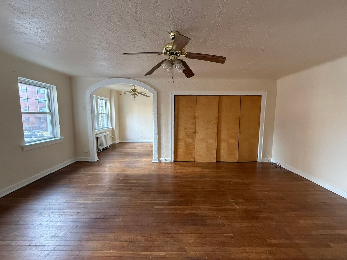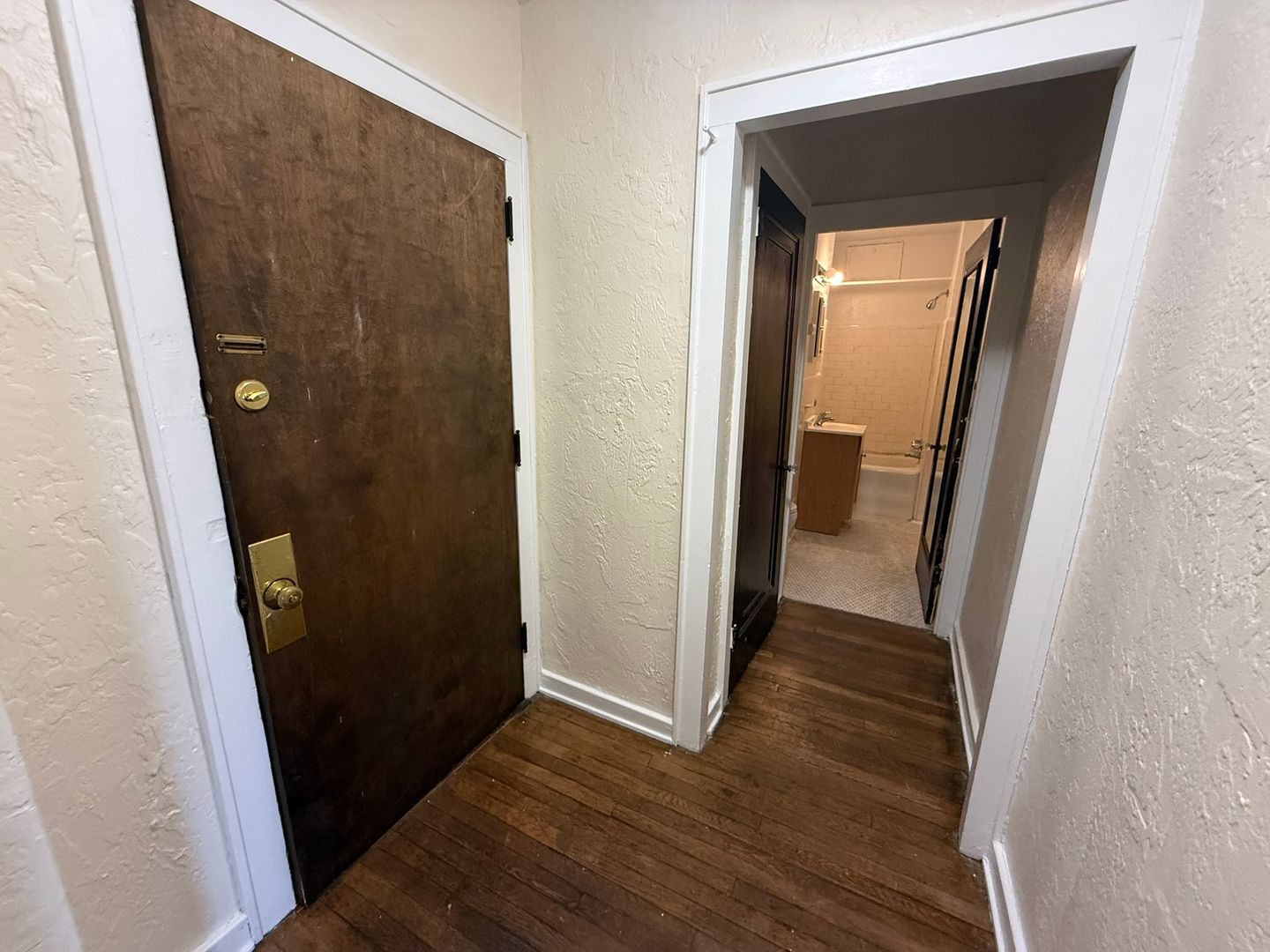 This studio apartment features lots of storage space, natural light, and plenty of style and character.