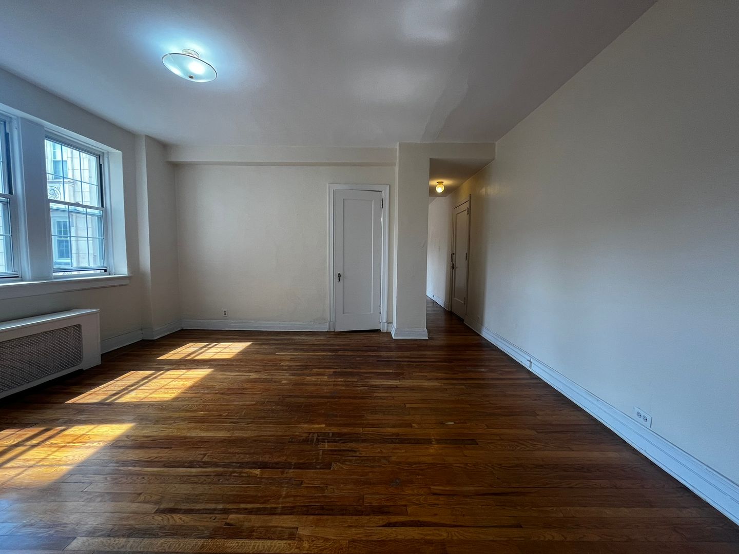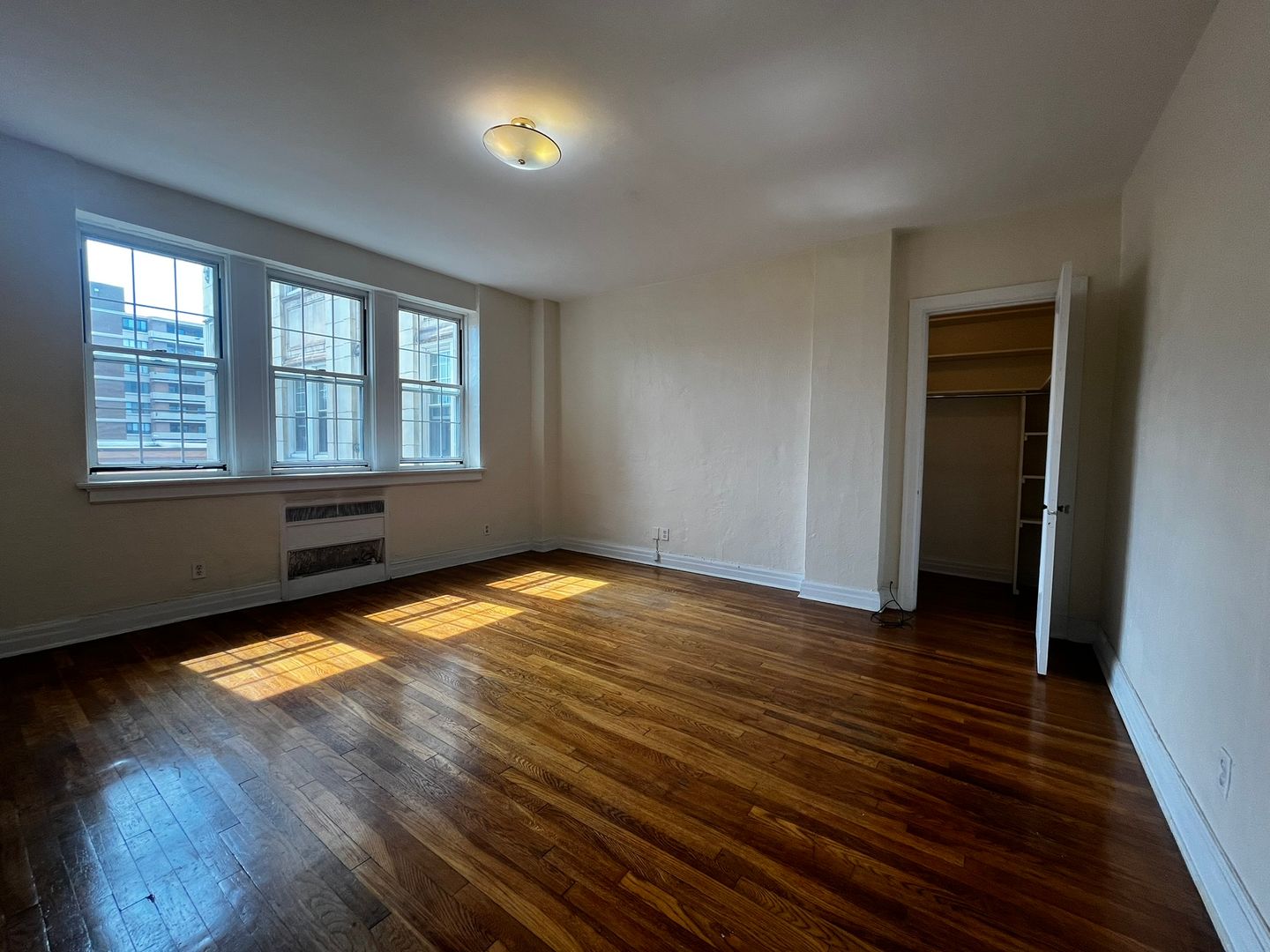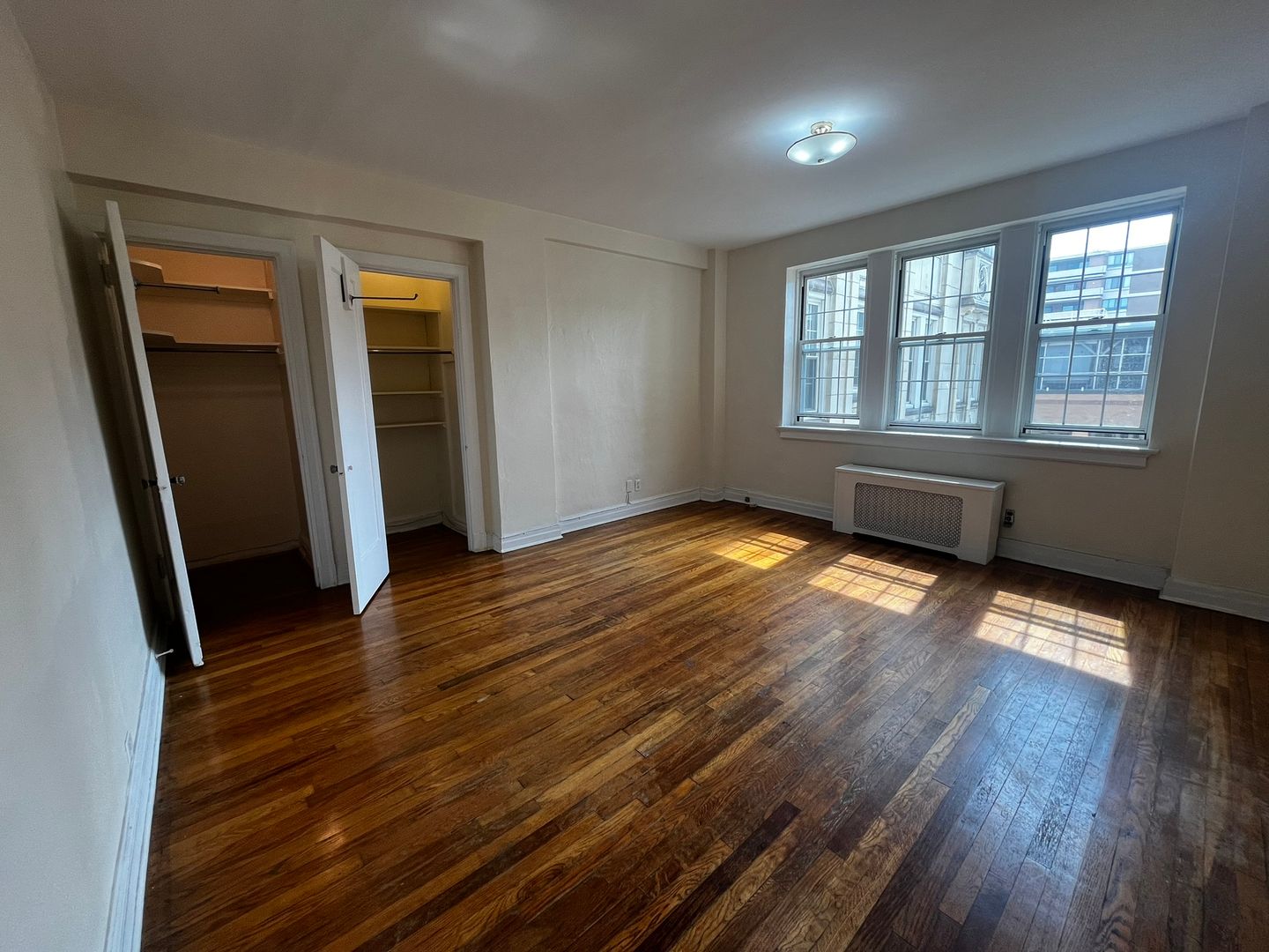This studio apartment features beautiful hardwood floors and lots of natural light.