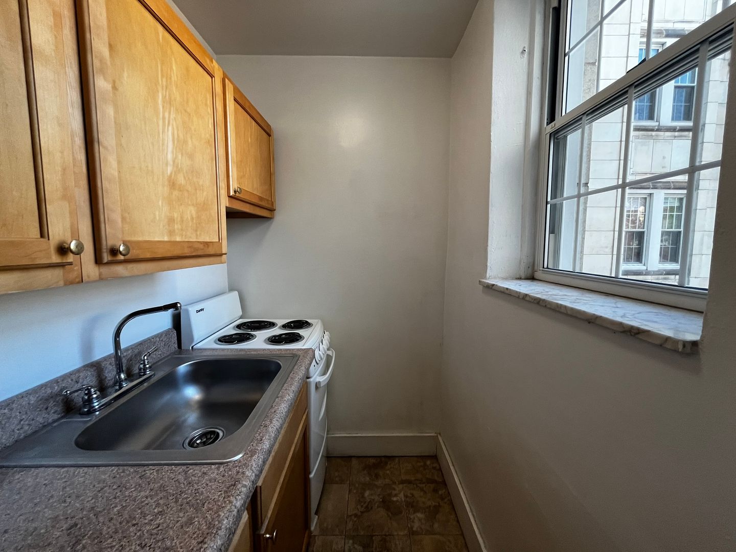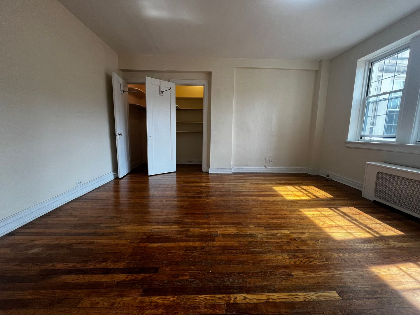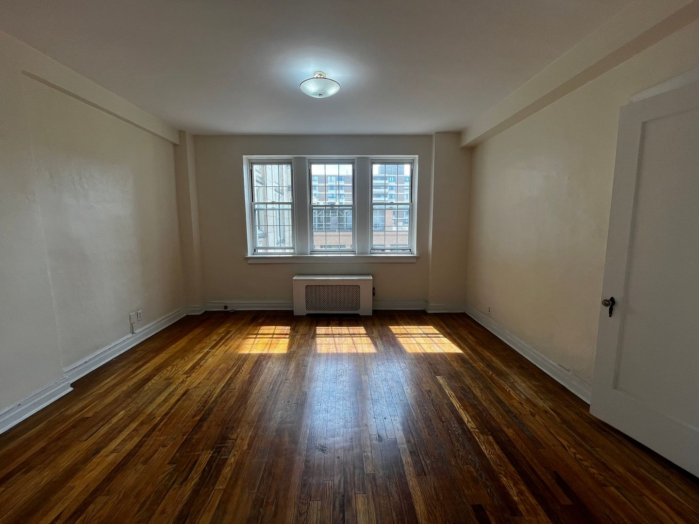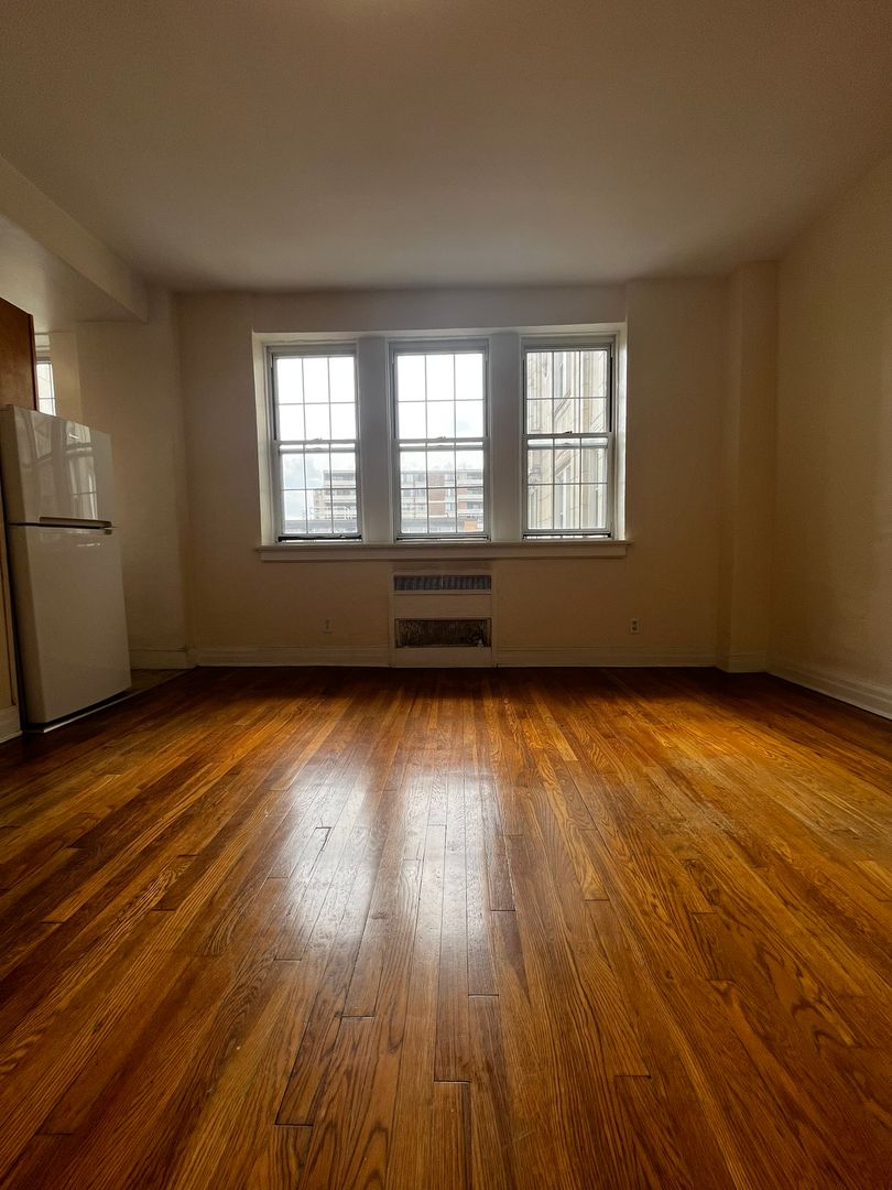 This studio apartment features beautiful hardwood floors and lots of natural light.
