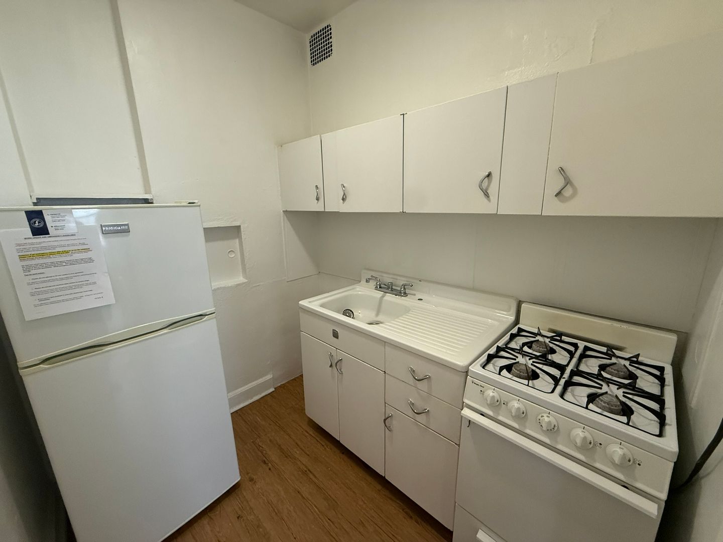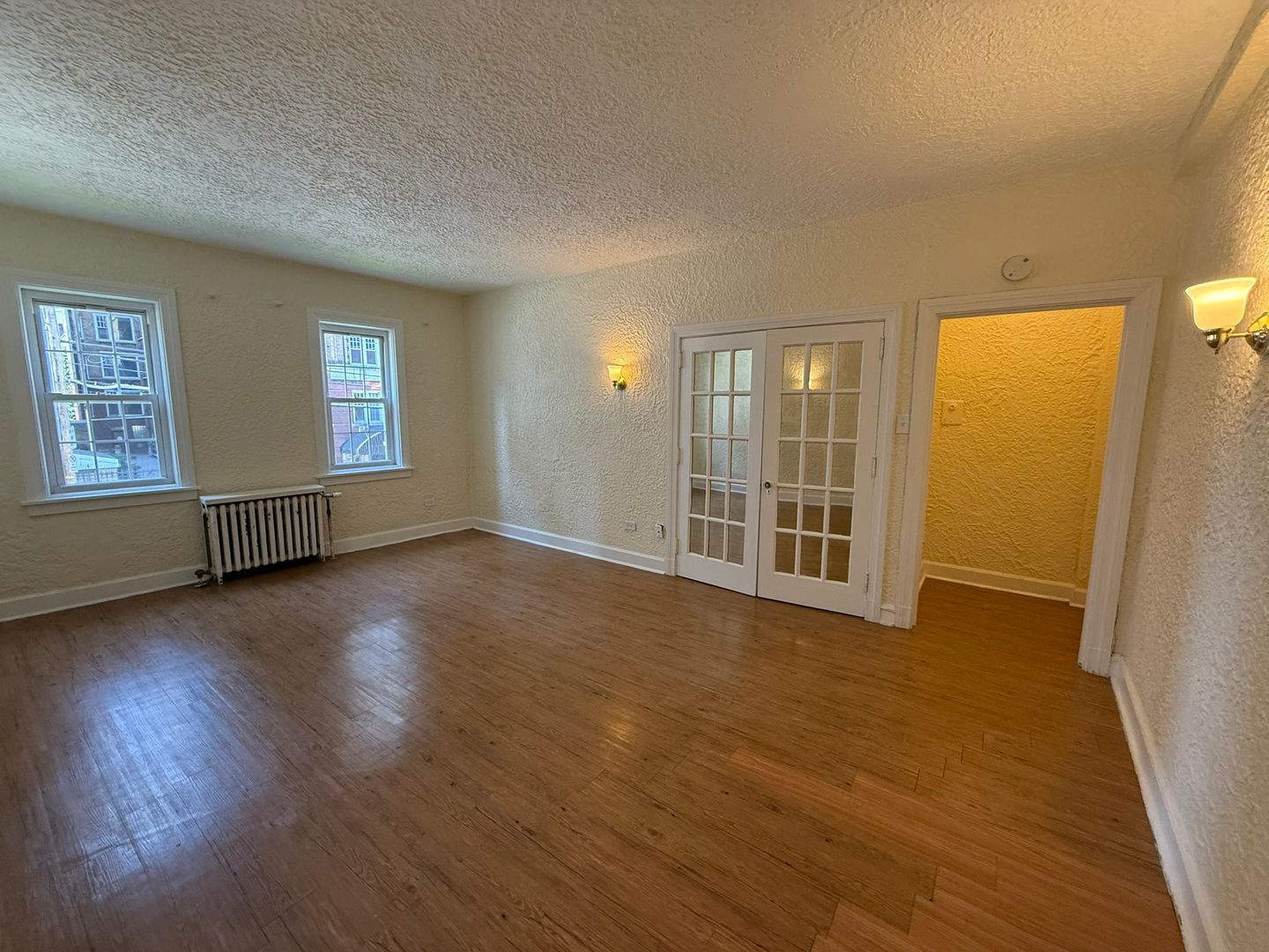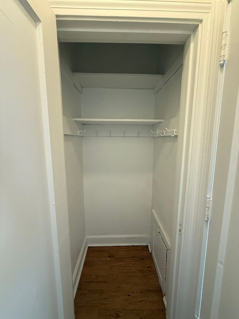 This studio apartment features lots of storage space, natural light, and plenty of style and character.