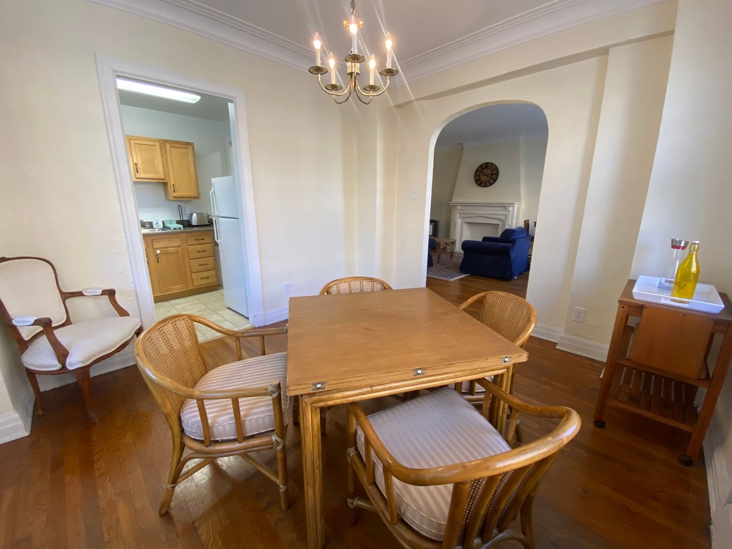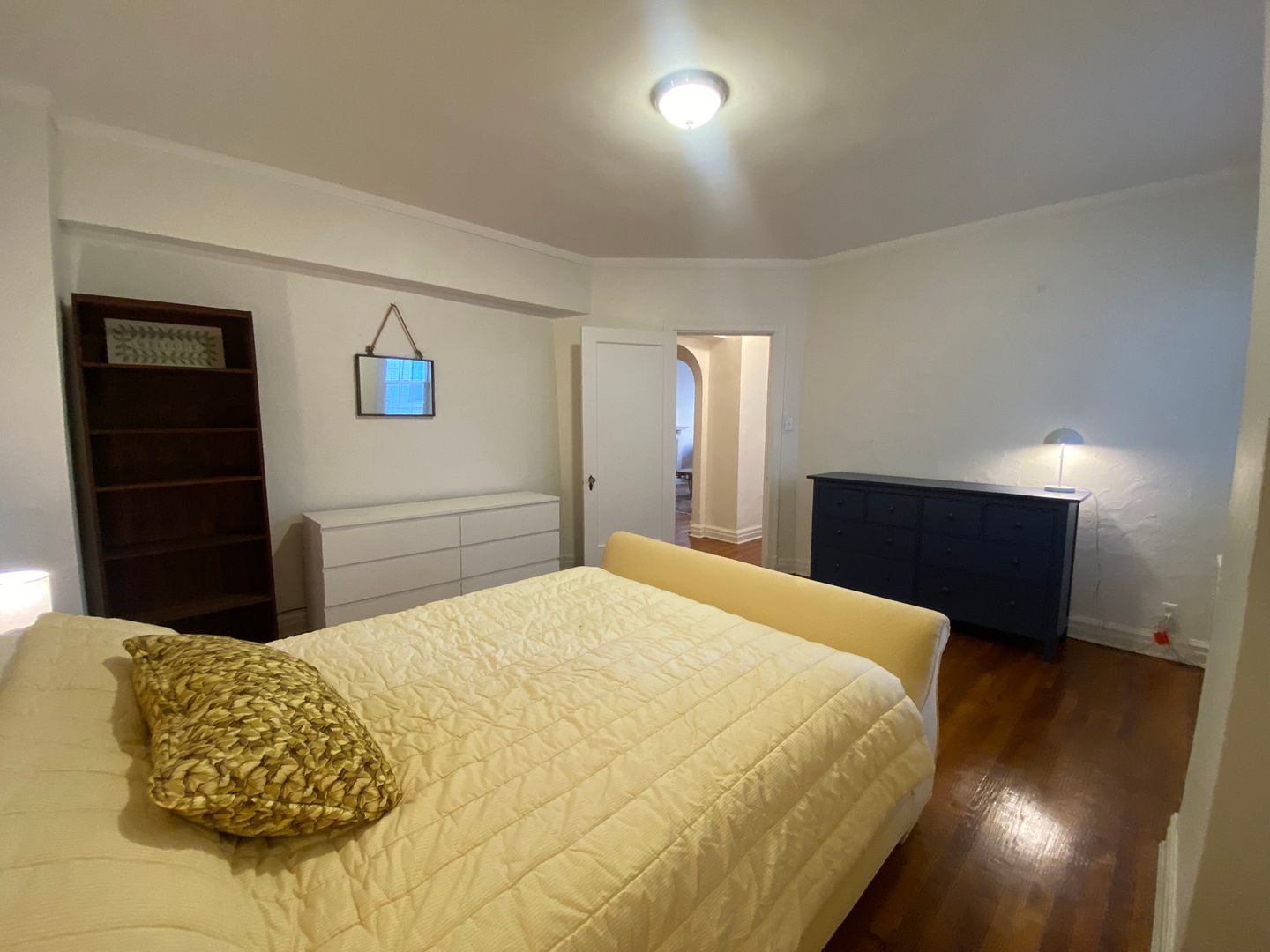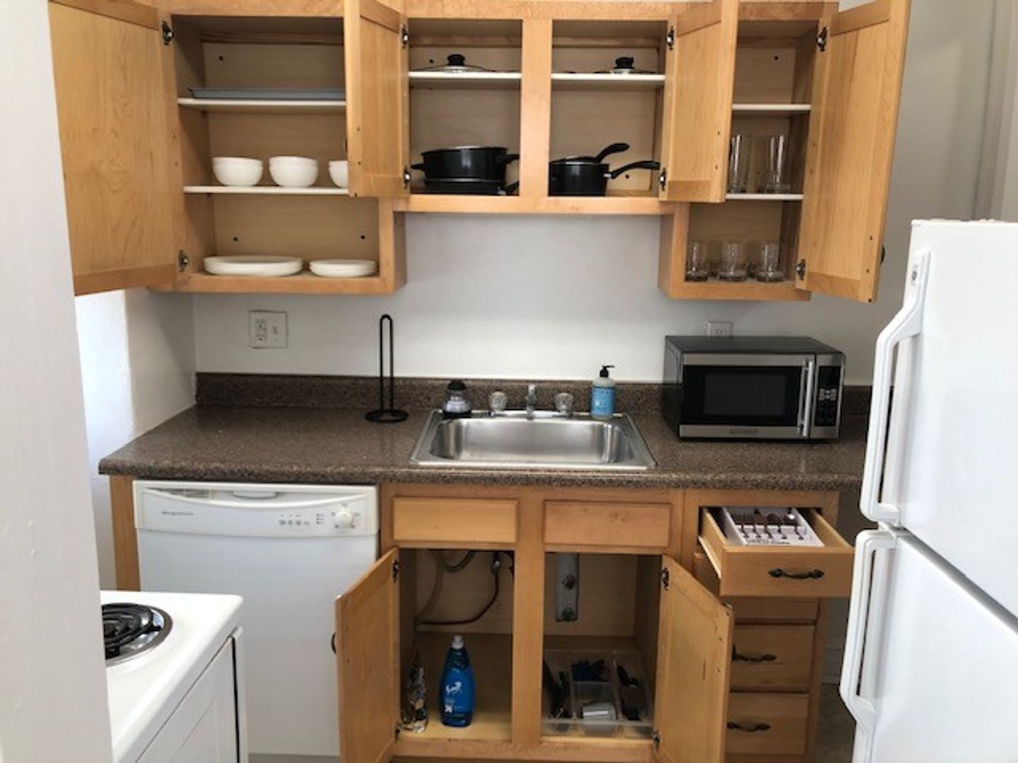 This furnished 1-bedroom apartment features beautiful hardwood floors and plenty of room for storage. The fully furnished unit provides bedding, towels, fully stocked kitchen, and flat screen tv.