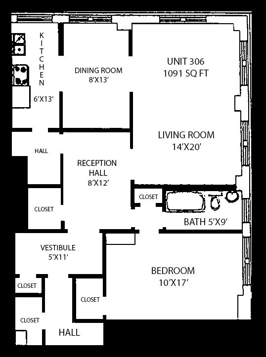 1 BR, 1 BA