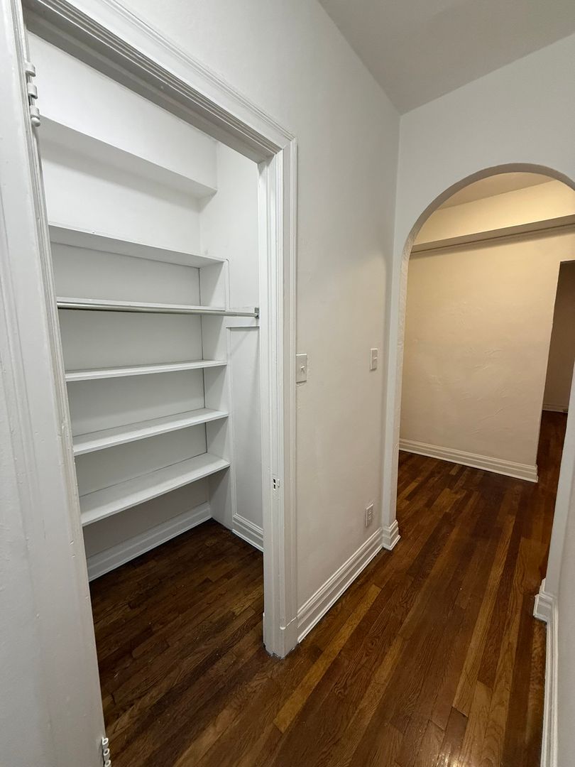 This 1 bedroom, 1 bath apartment features lots of storage space, natural light, and plenty of style and character.