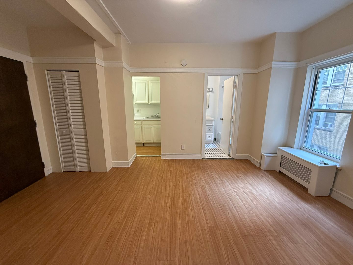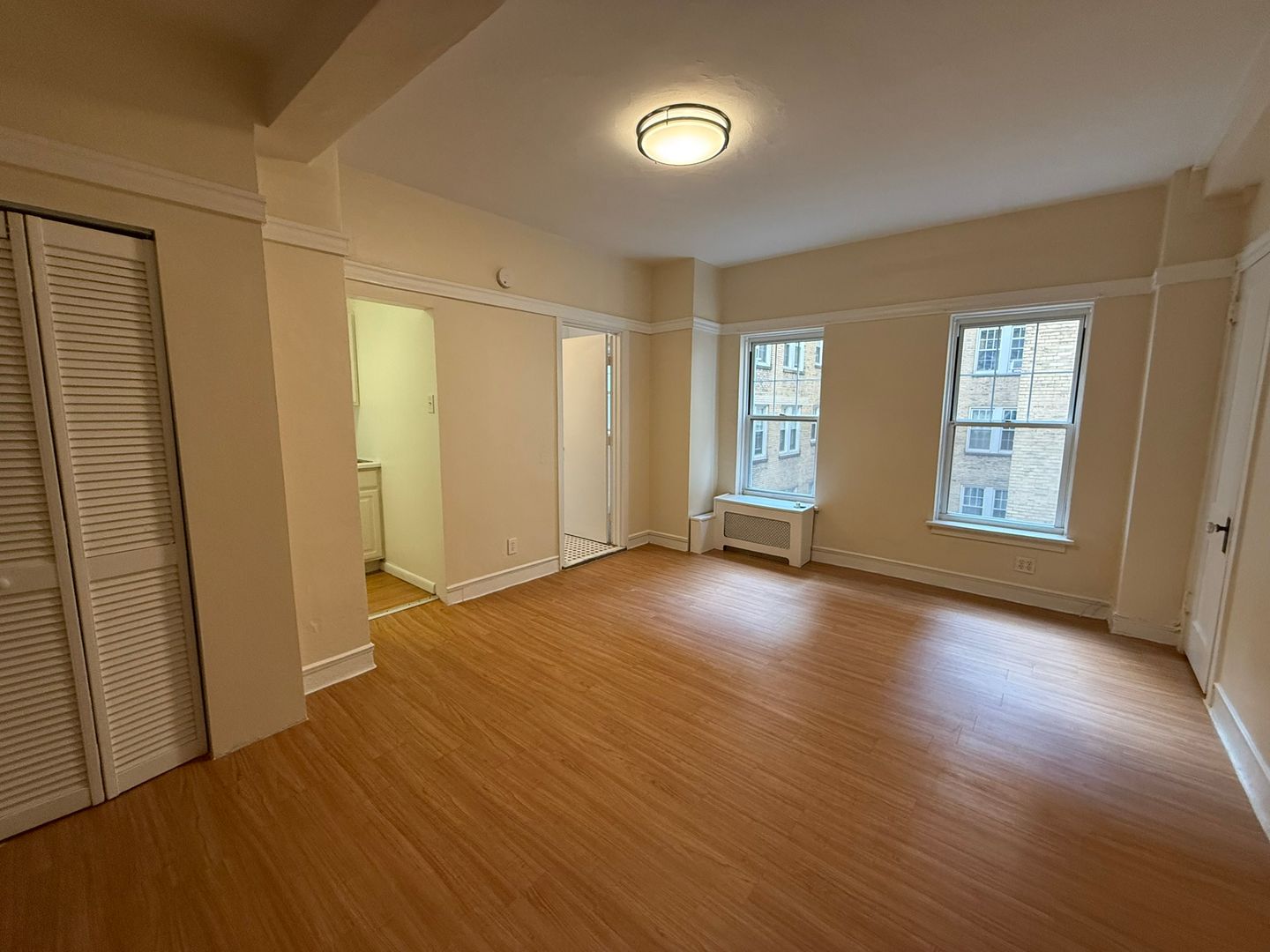 This Studio apartment features beautiful hardwood floors and lots of natural light.