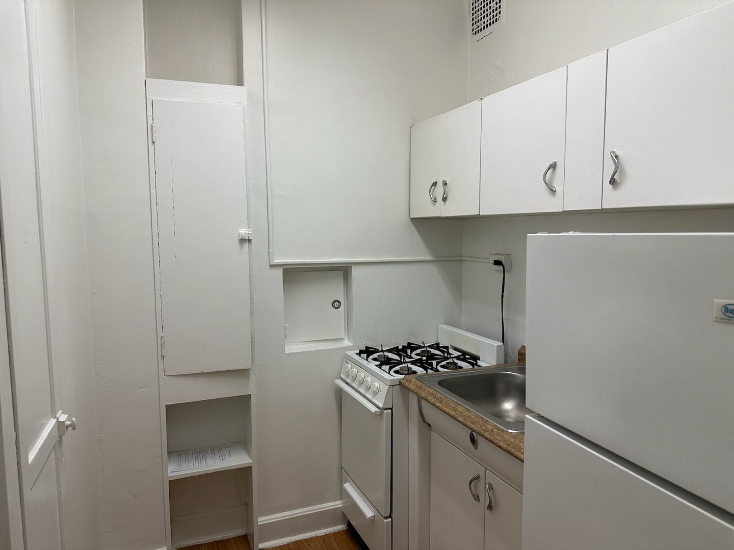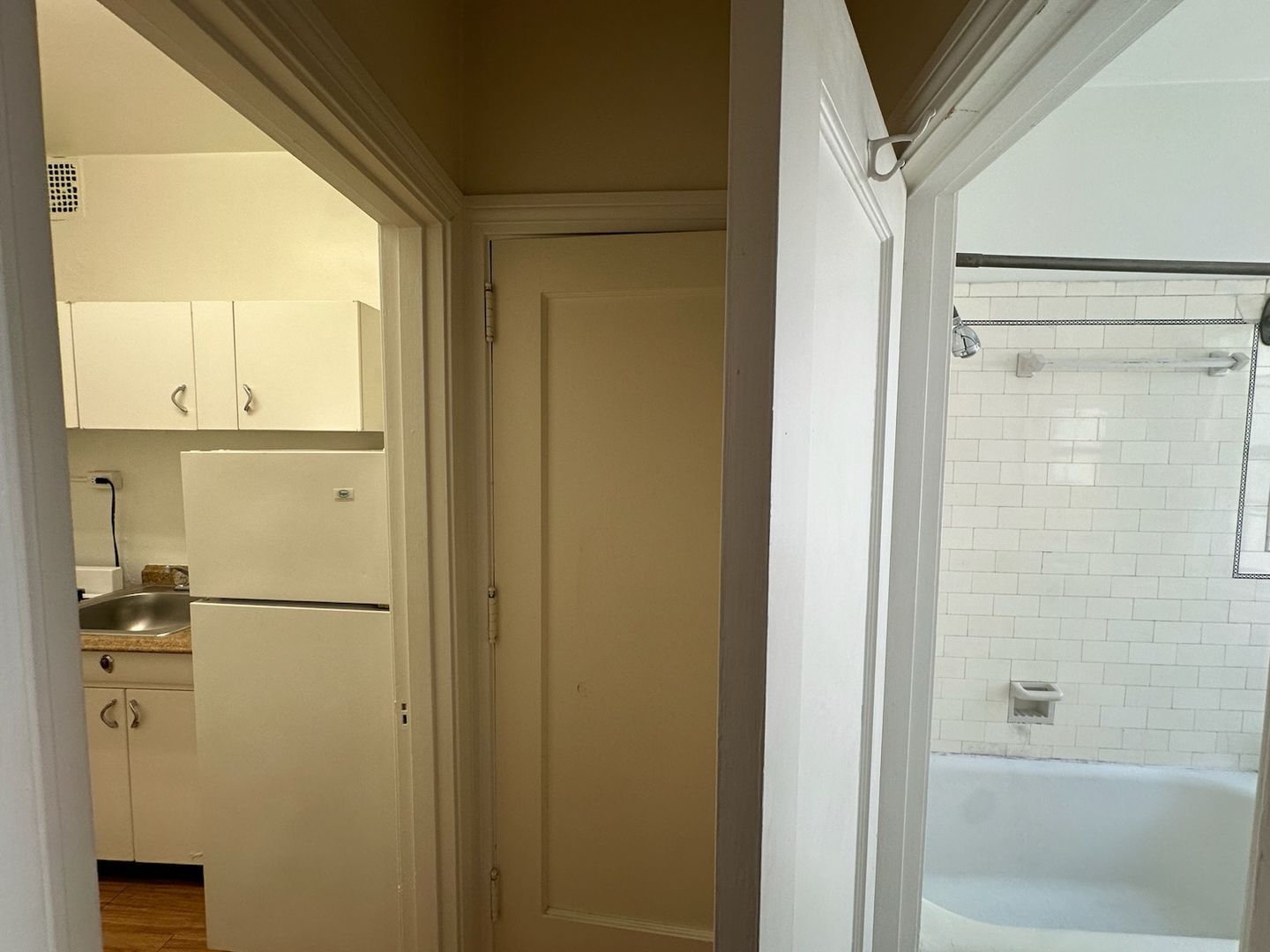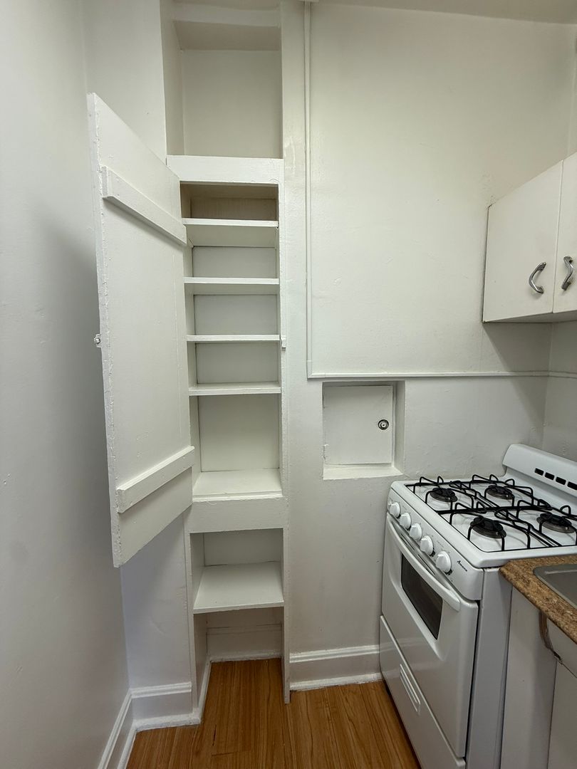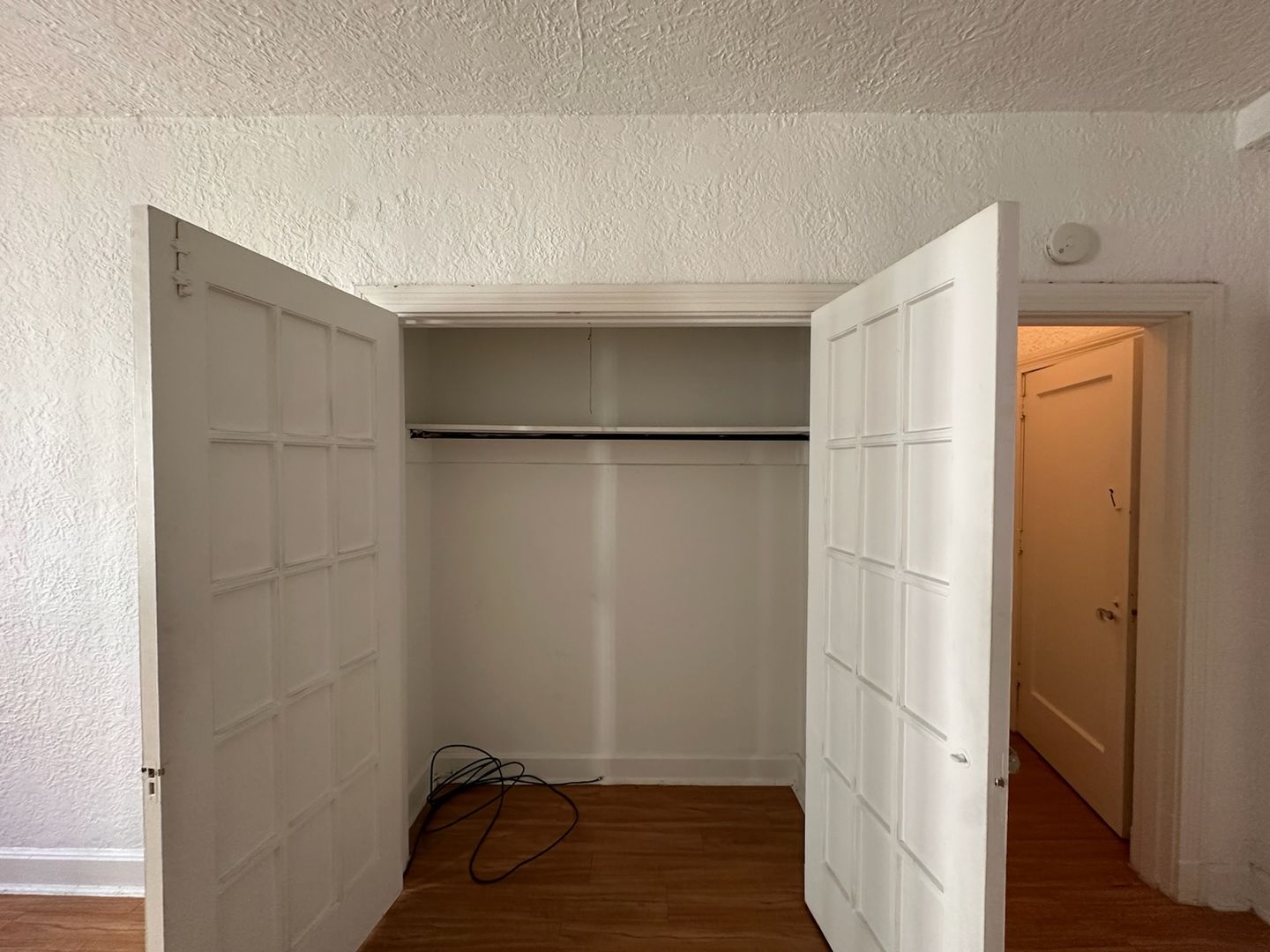 This studio apartment features lots of storage space, natural light, and plenty of style and character.