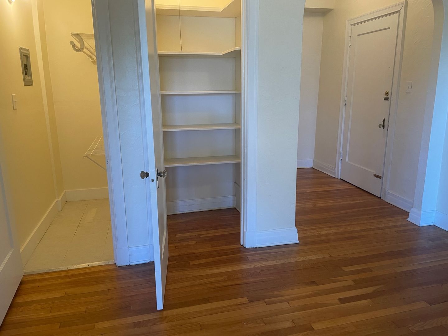 This 1 bedroom, 1 bath apartment features lots of storage space, natural light, and plenty of style and character.