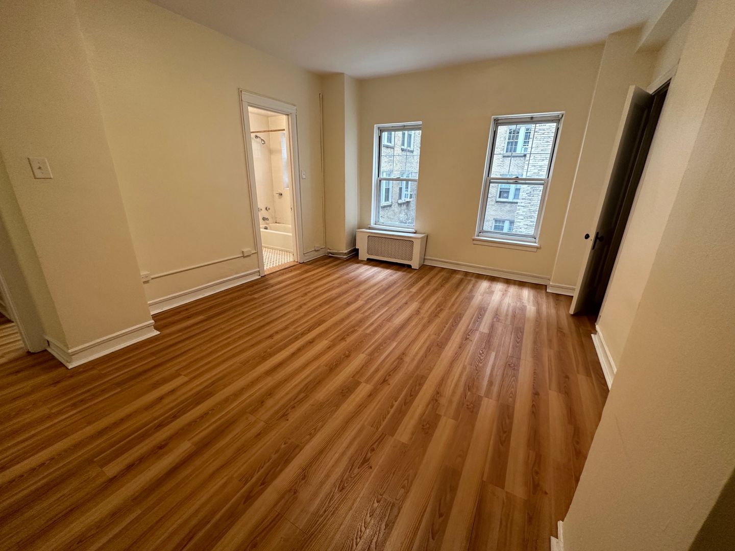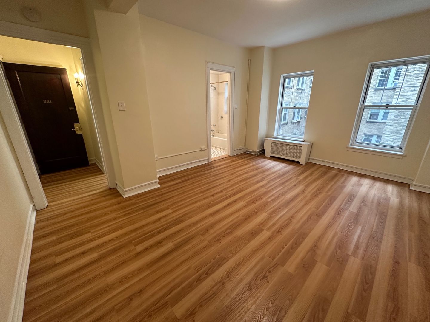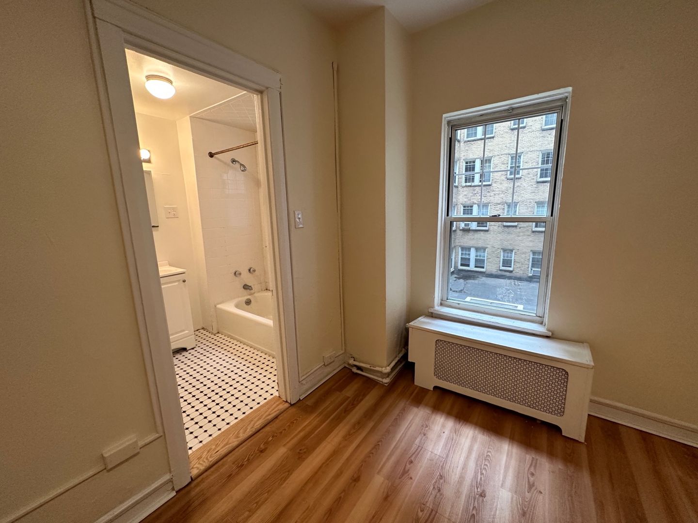 This studio apartment features lots of storage space, natural light, and plenty of style and character.