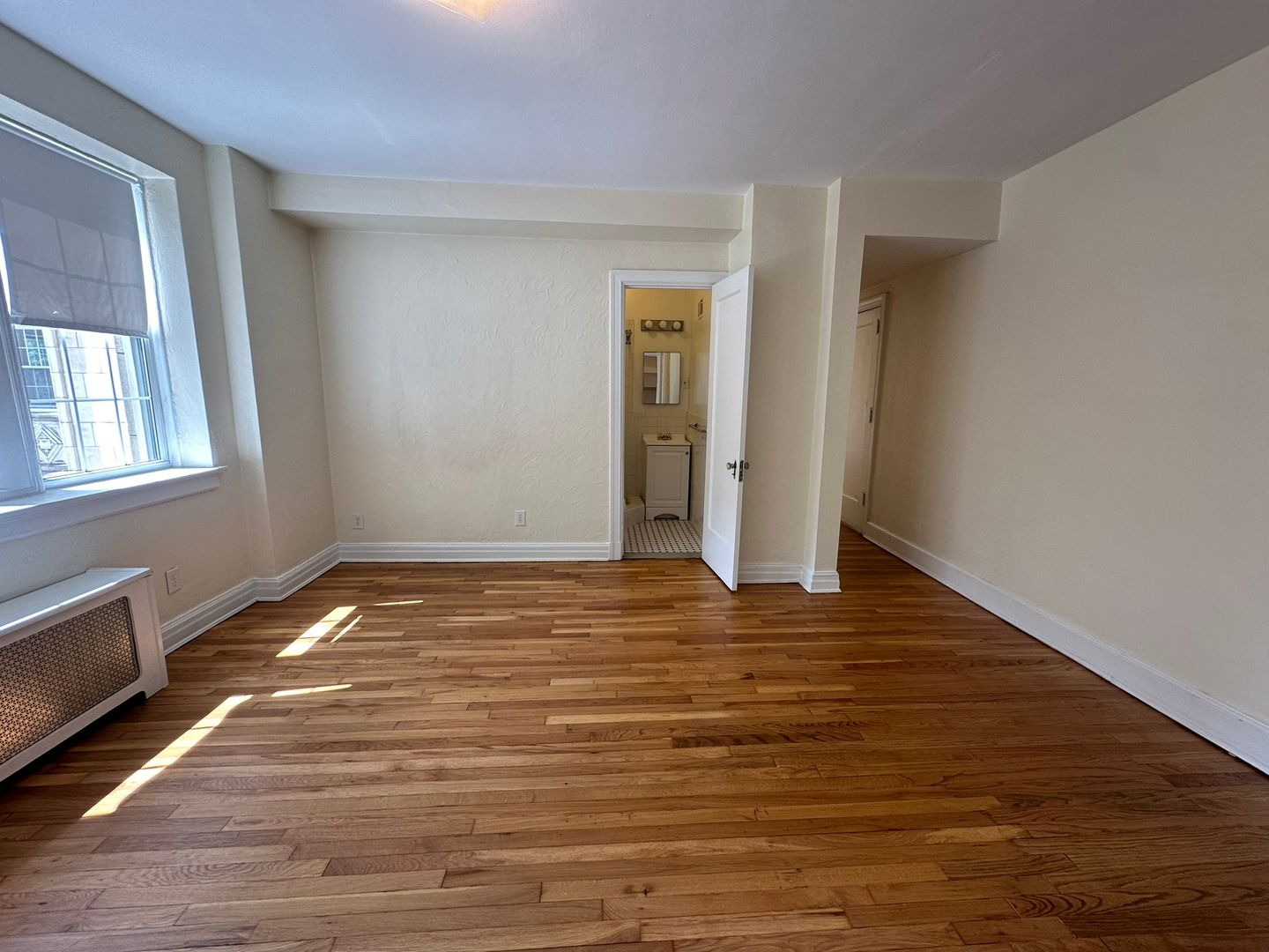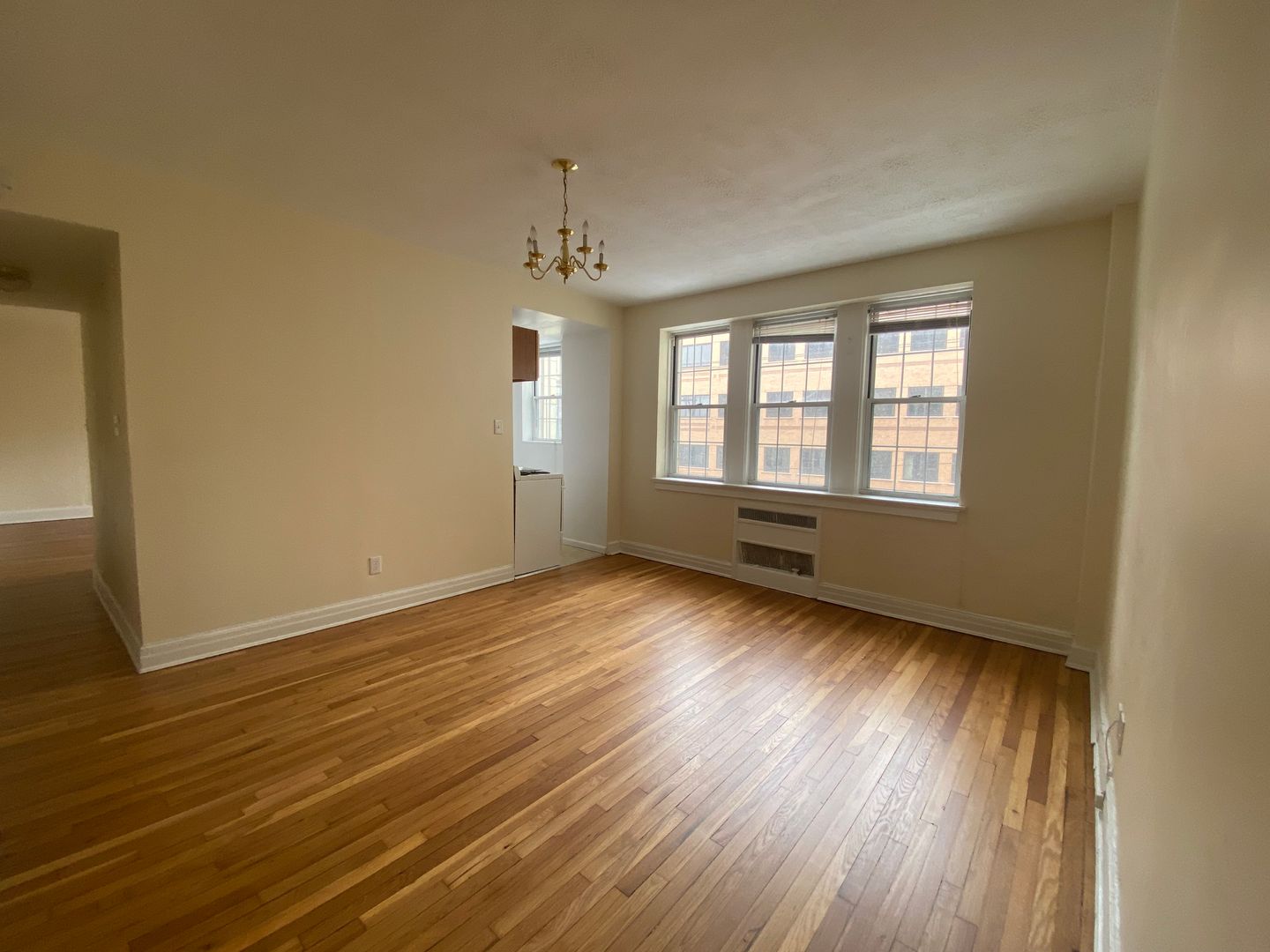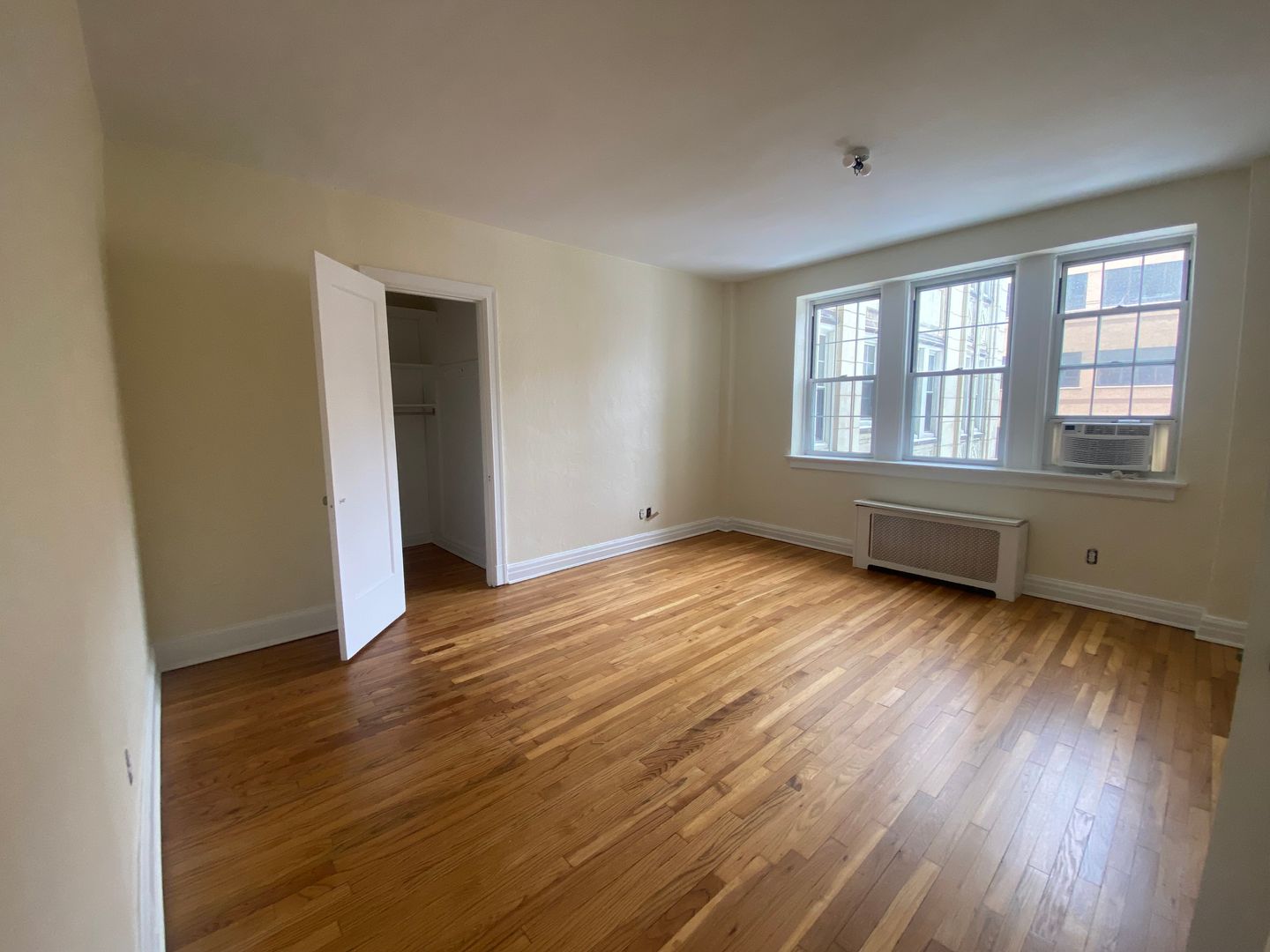 This studio apartment features beautiful hardwood floors and lots of natural light.