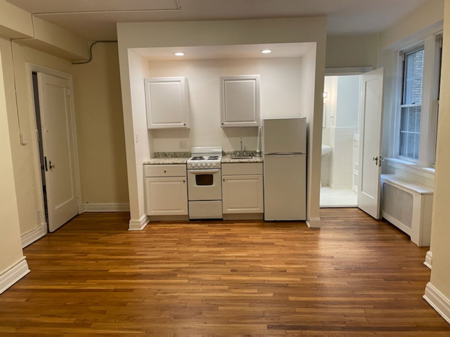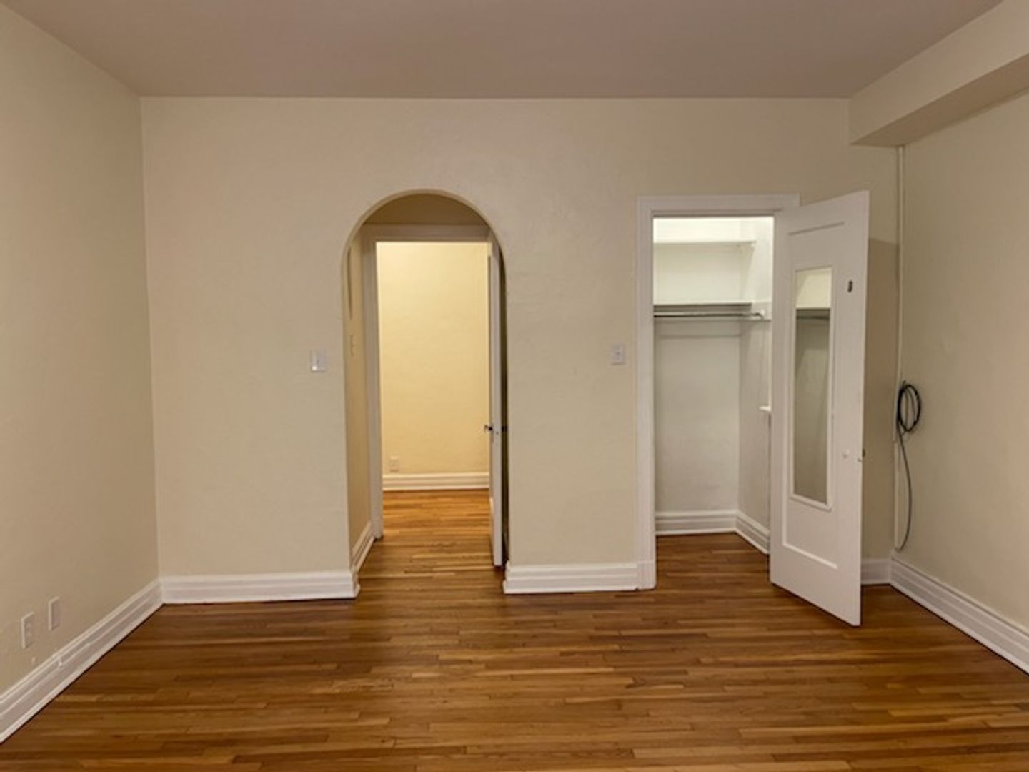 This studio apartment features beautiful hardwood floors, lots of storage space and plenty of style and character.
