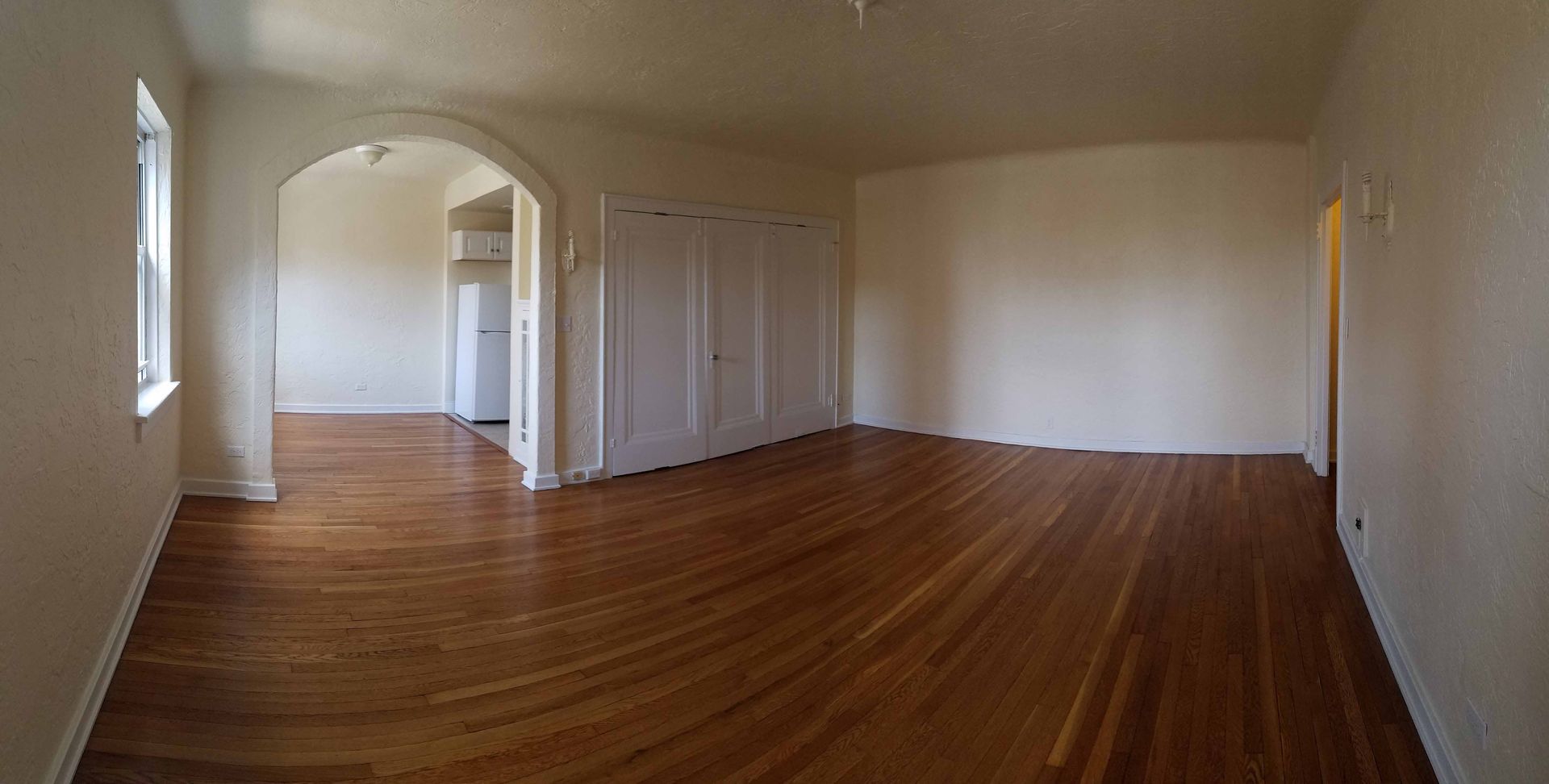 This studio apartment features lots of storage space, natural light, and plenty of style and character.