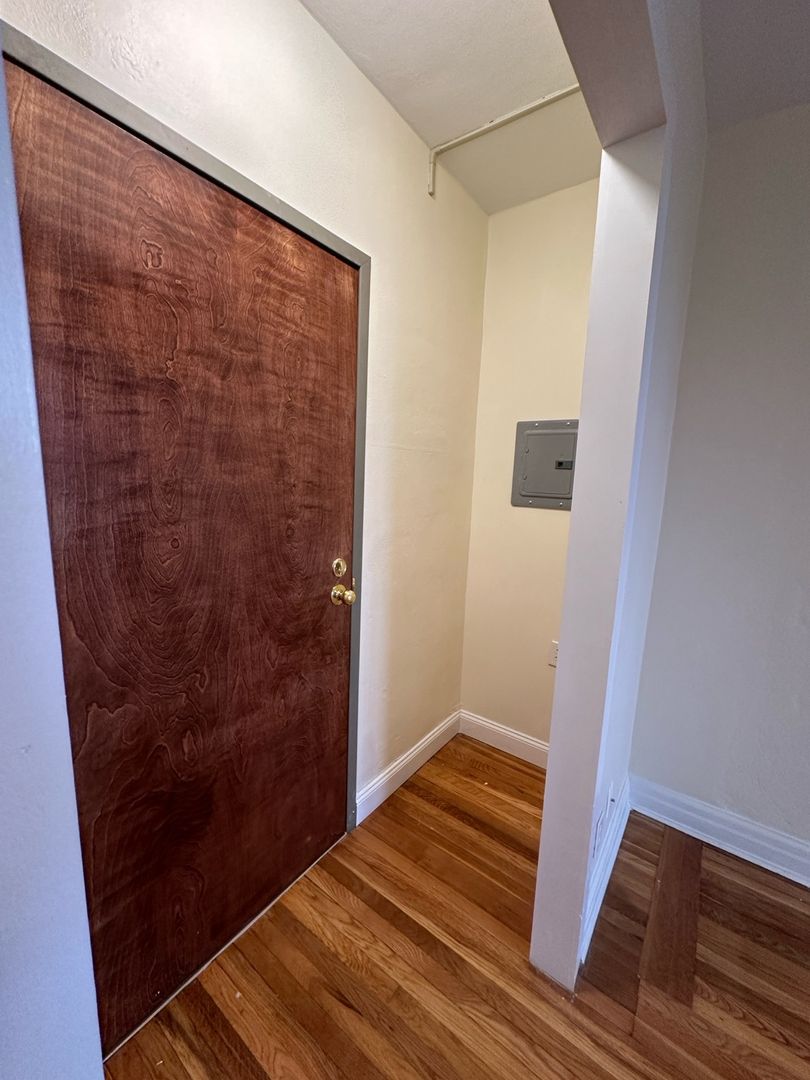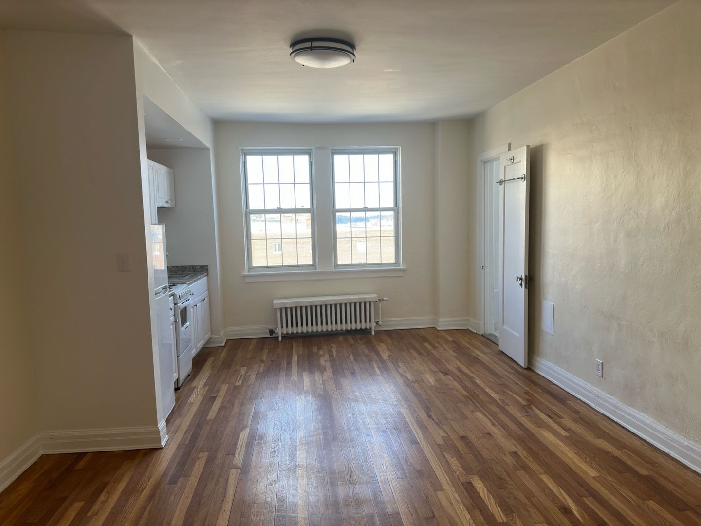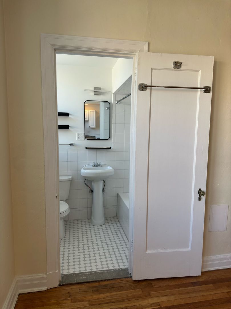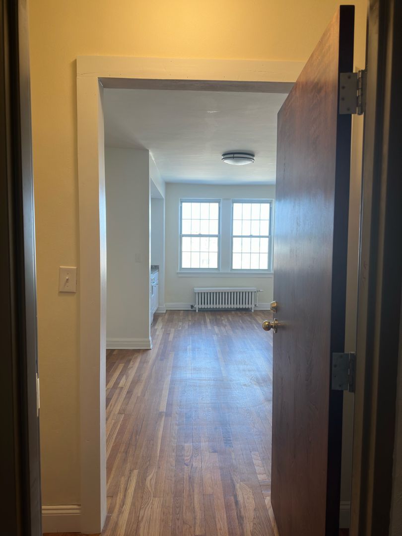This studio apartment features beautiful hardwood floors and lots of natural light.