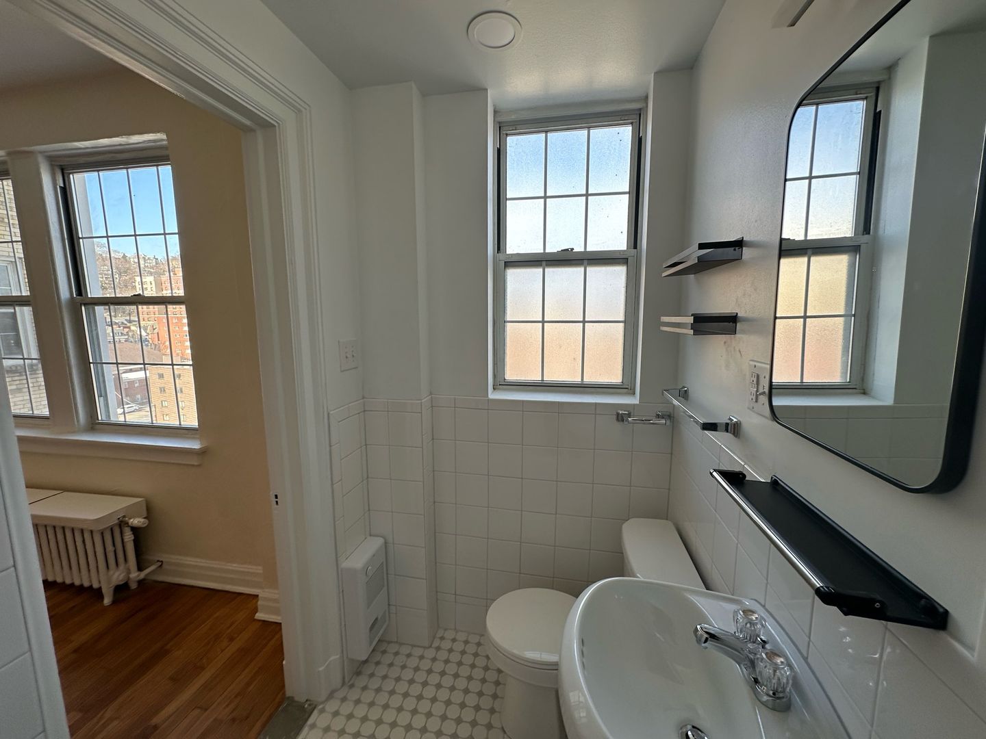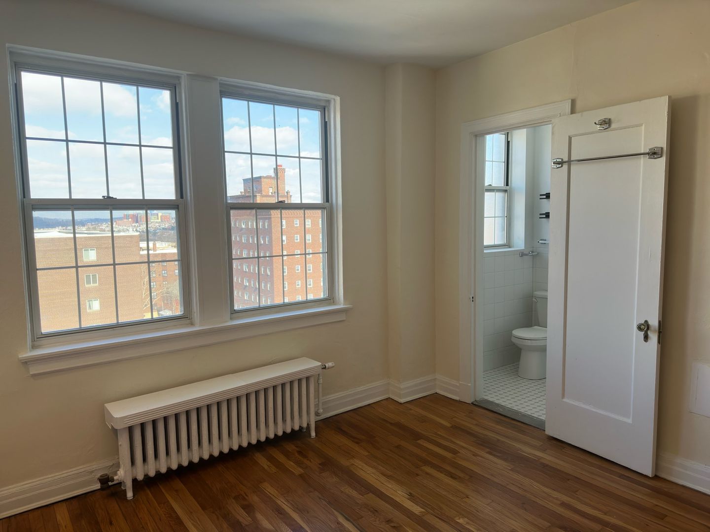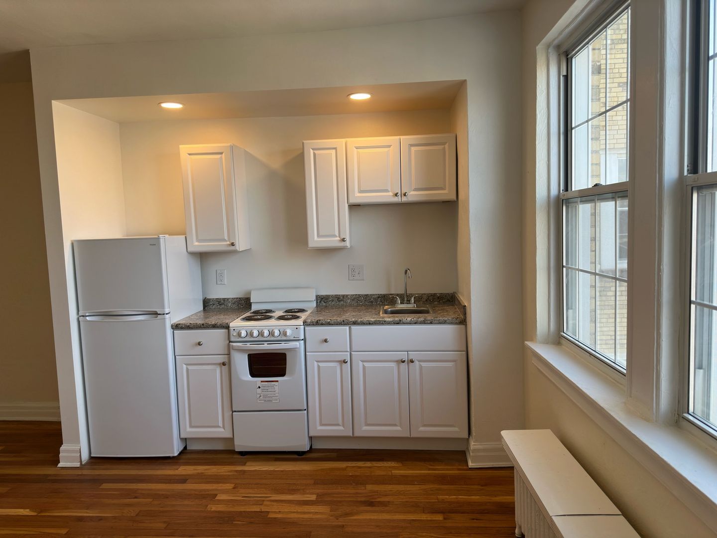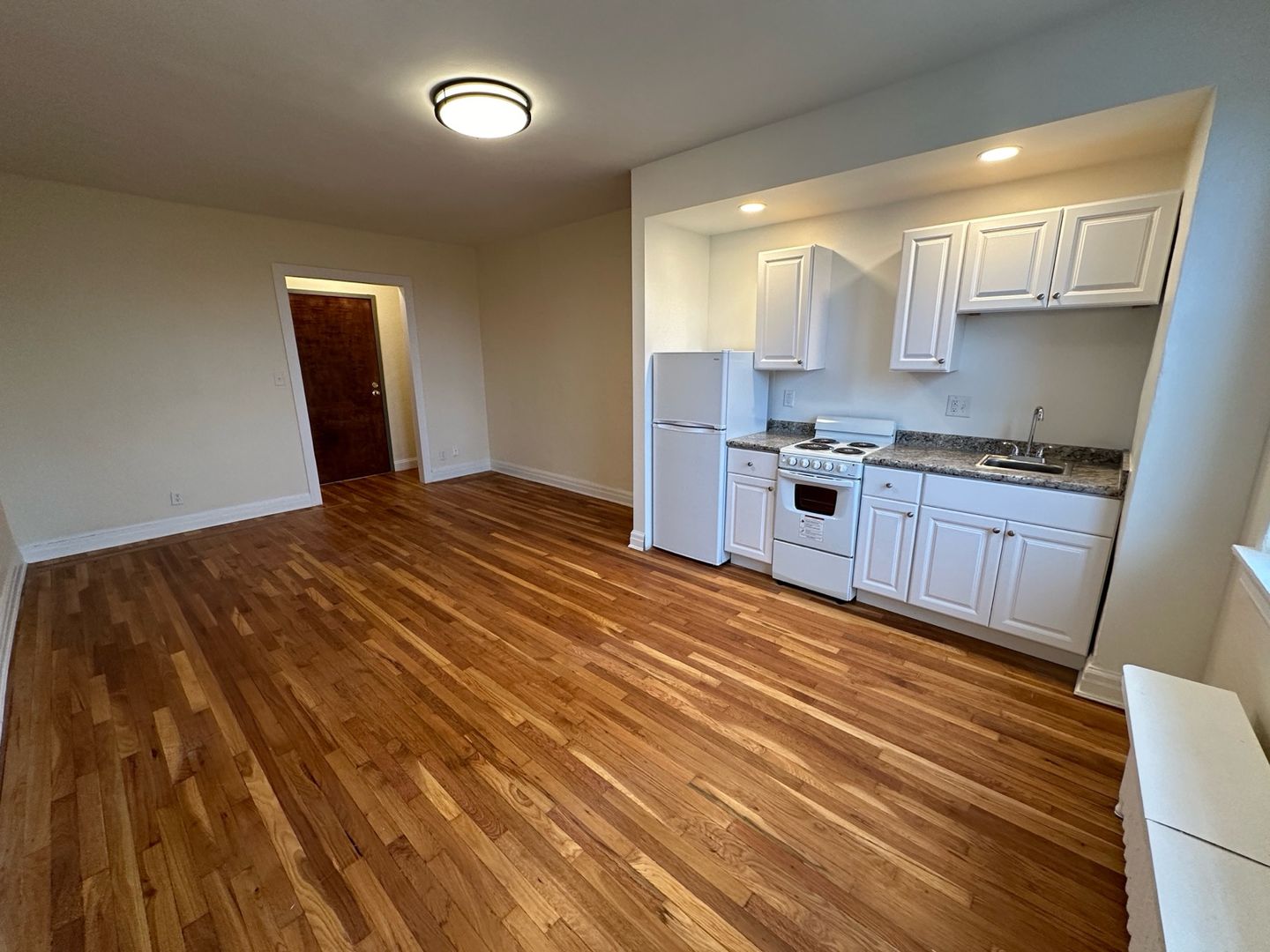 This studio apartment features beautiful hardwood floors and lots of natural light.
