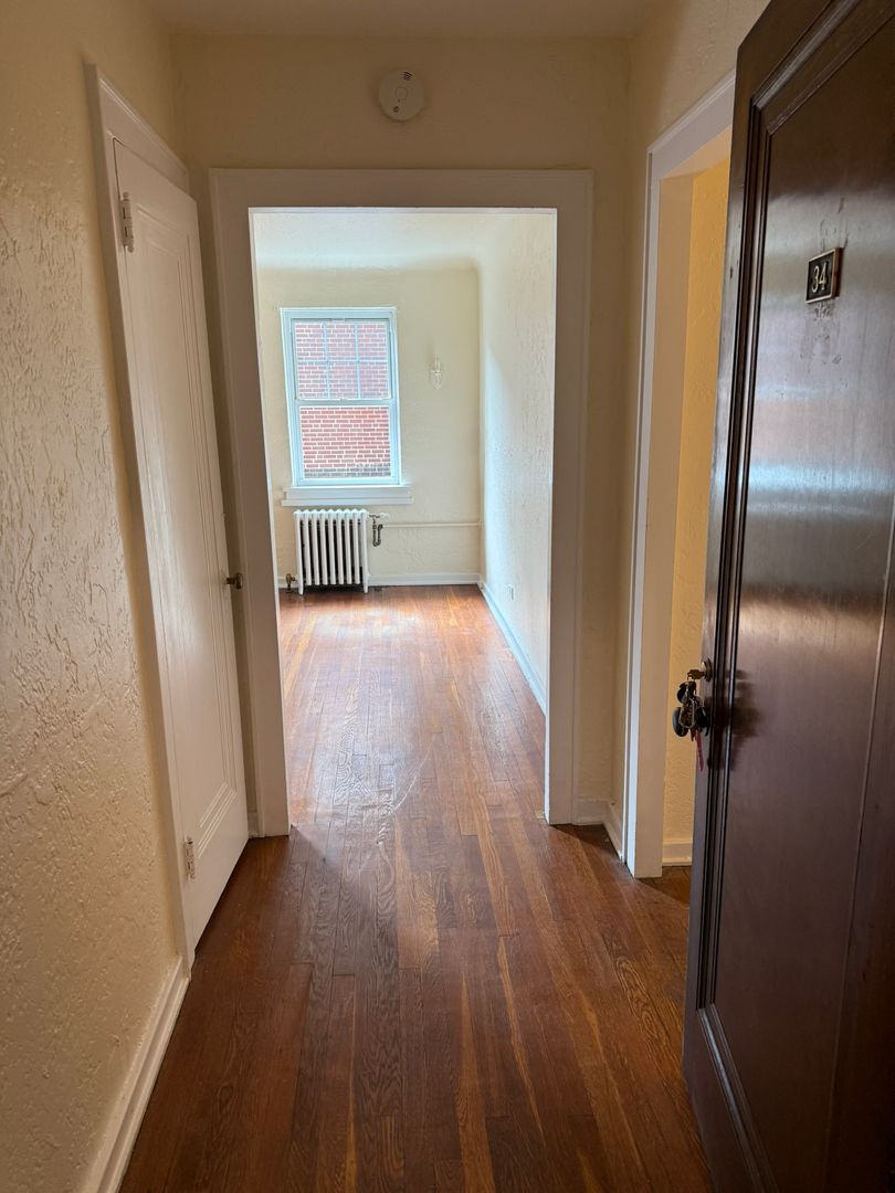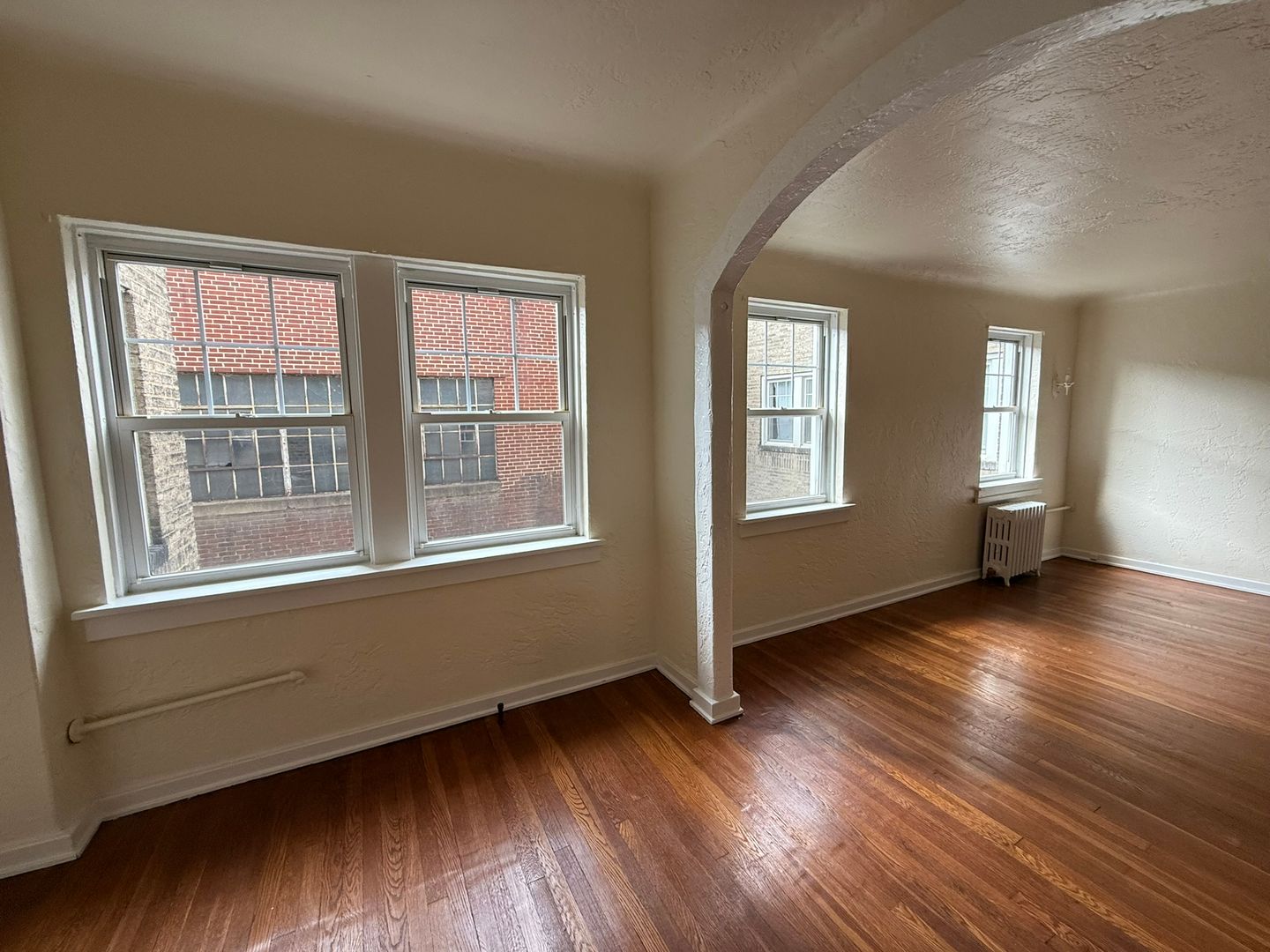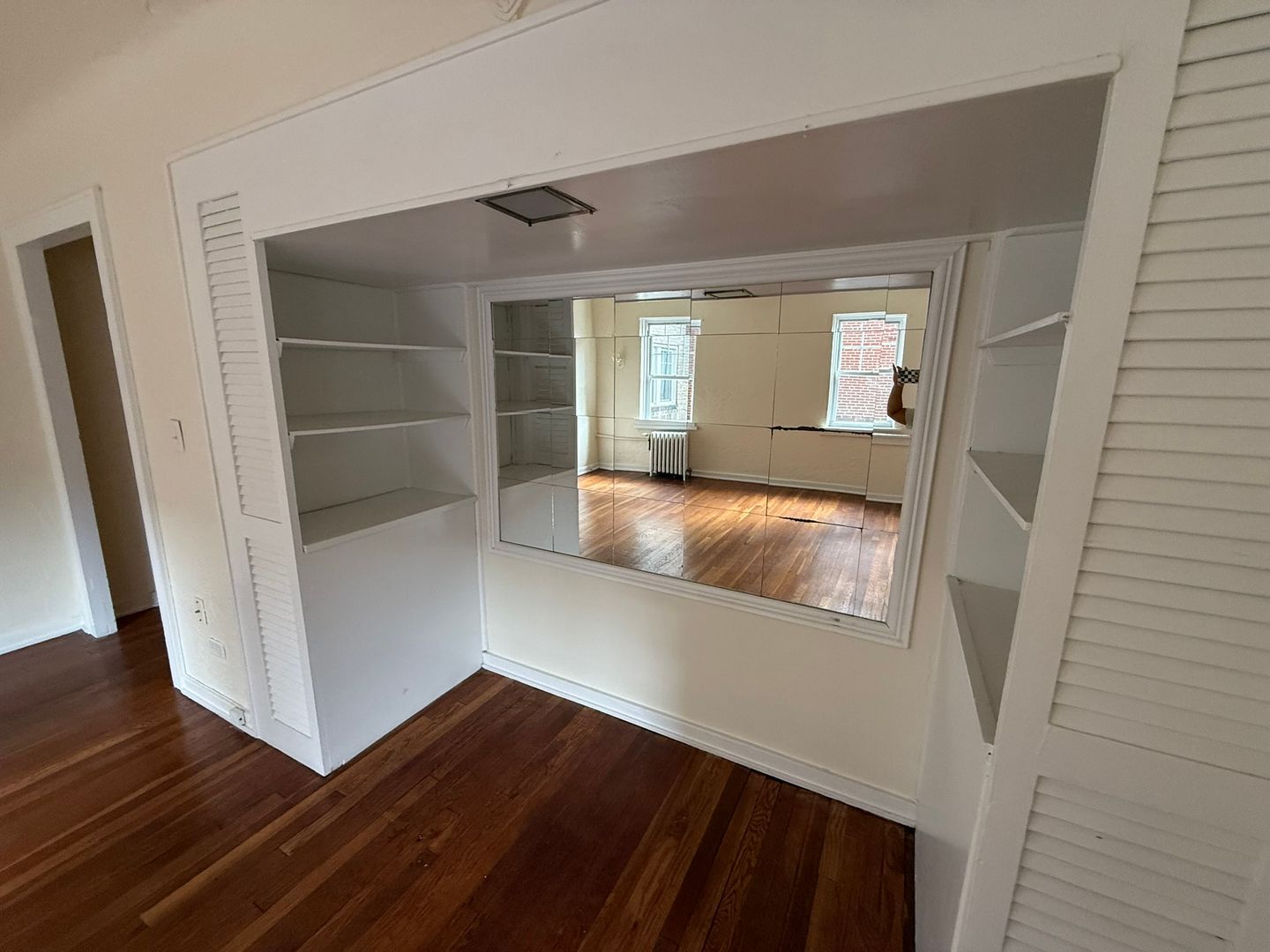 This studio apartment features lots of storage space, natural light, and plenty of style and character.