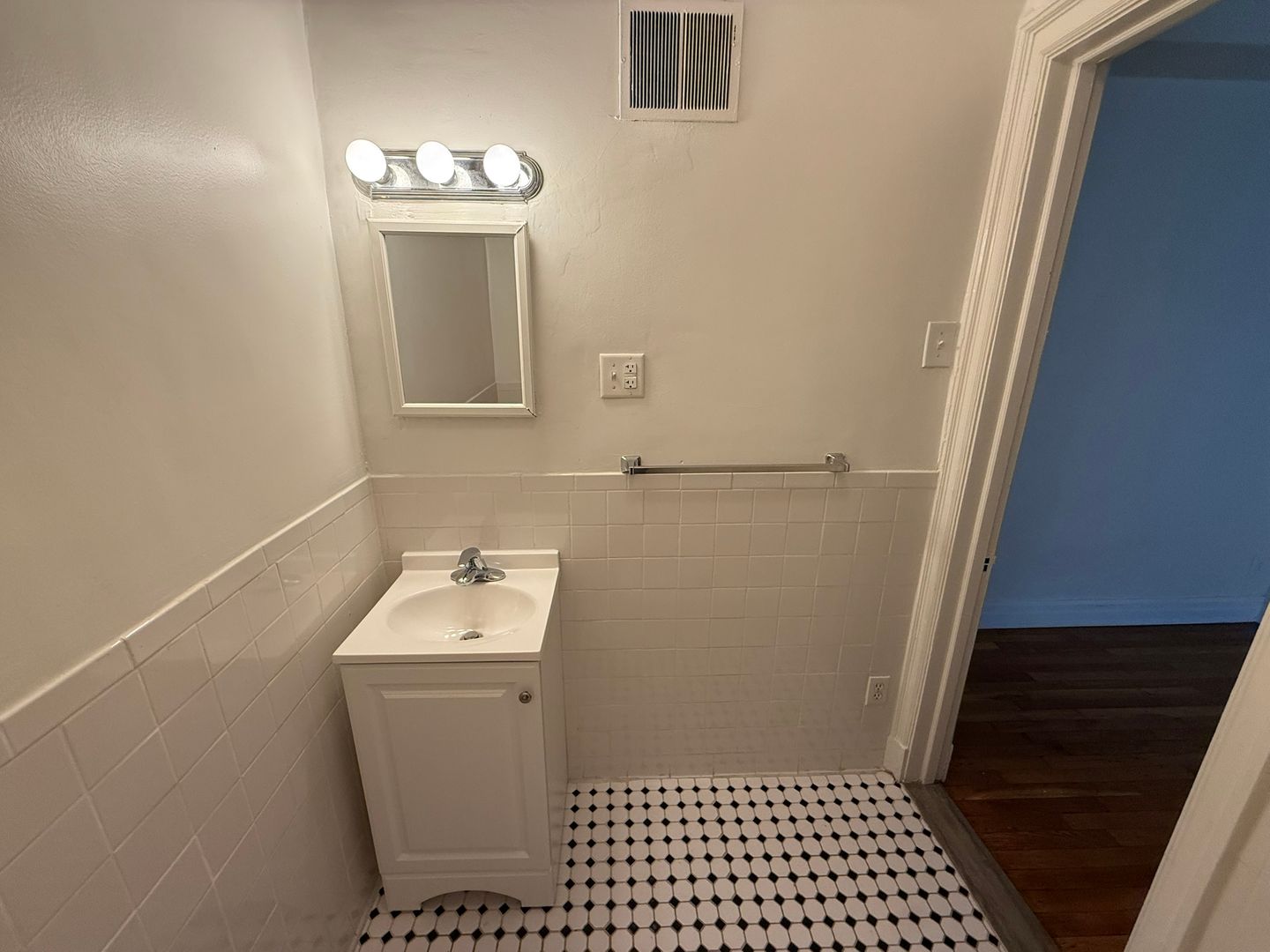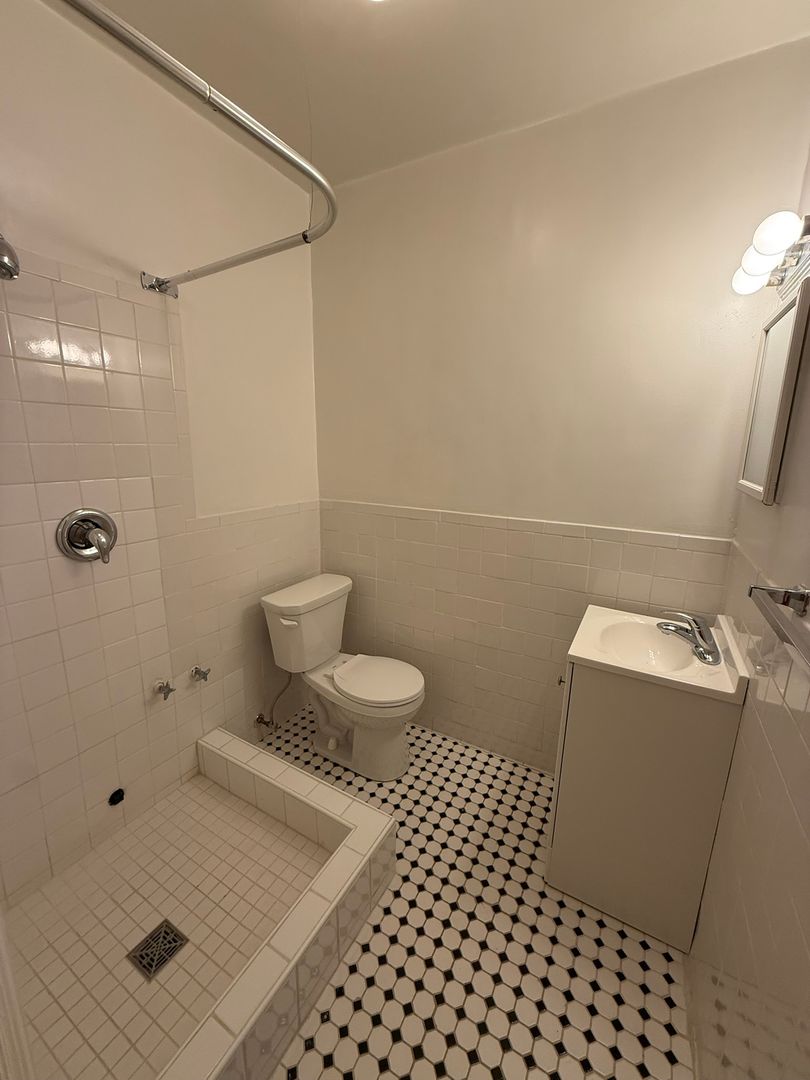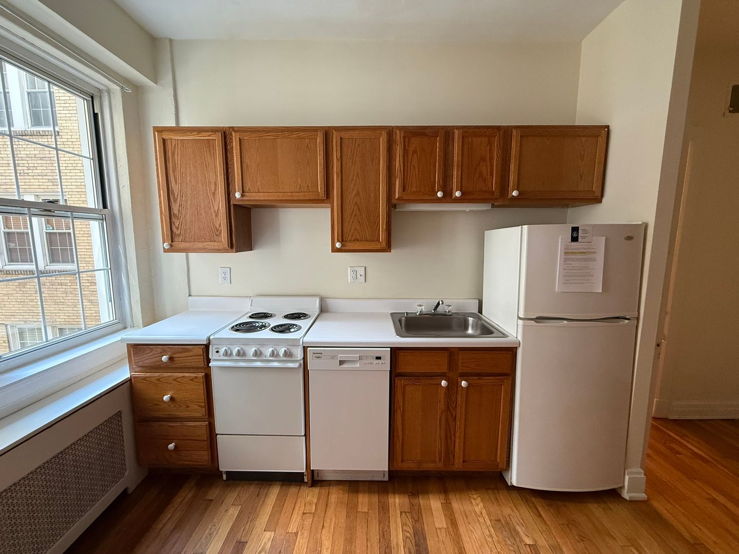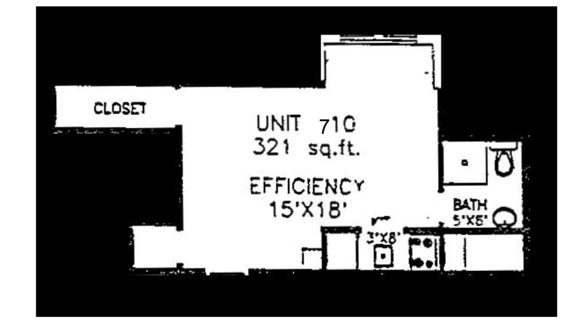 This studio apartment features beautiful hardwood floors and lots of storage.