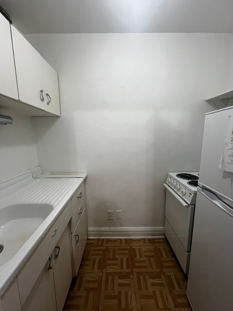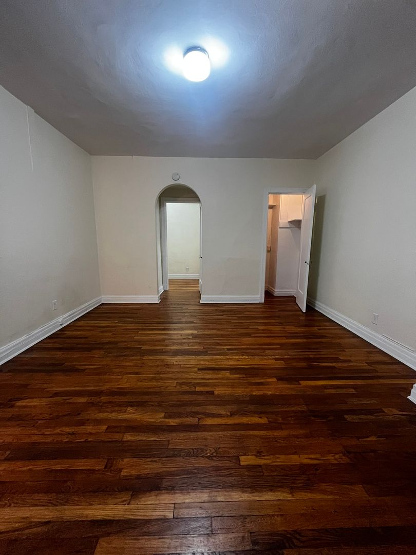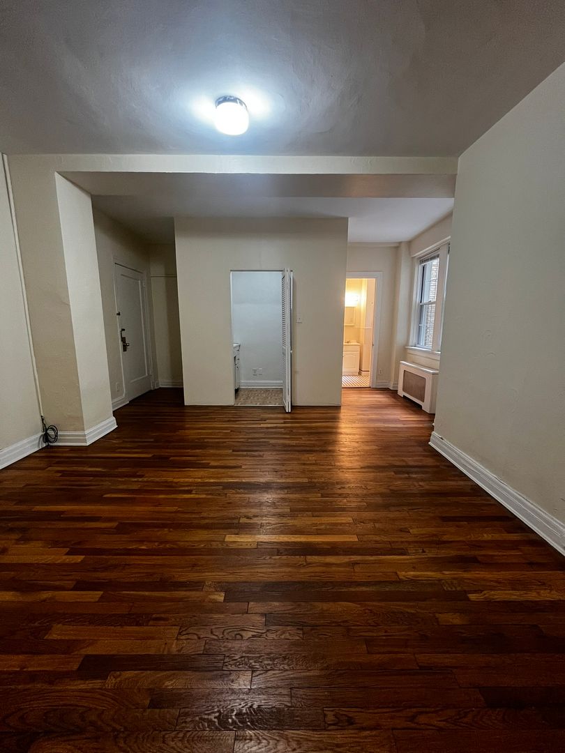 This studio apartment features beautiful hardwood floors and lots of natural light.