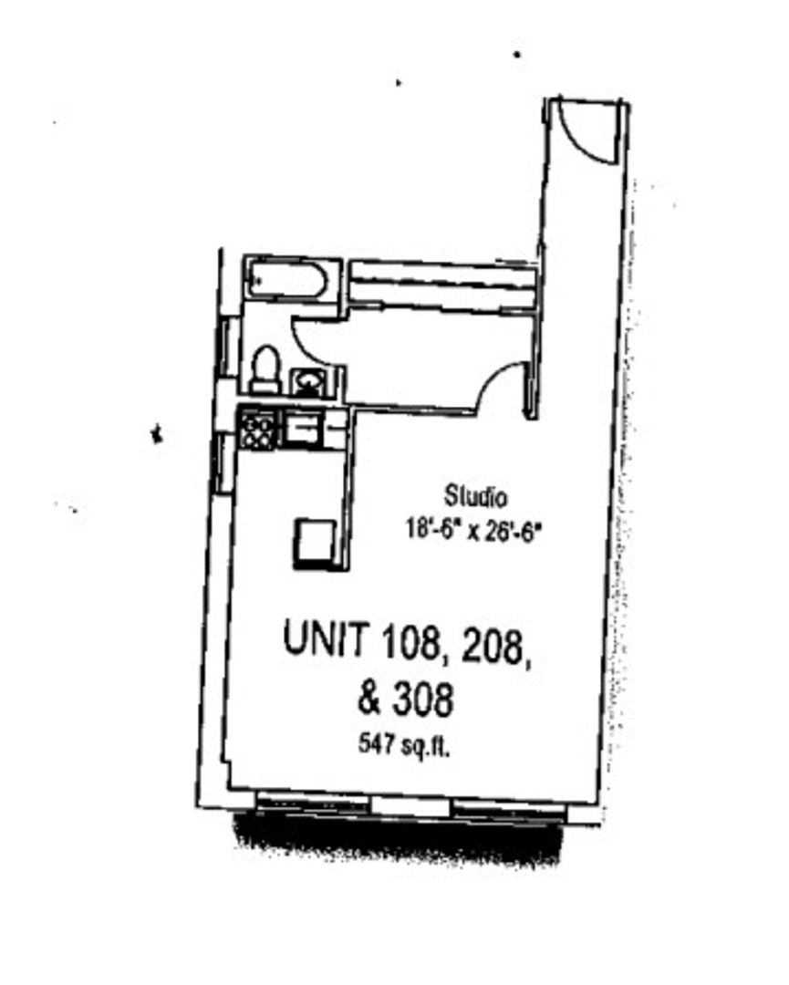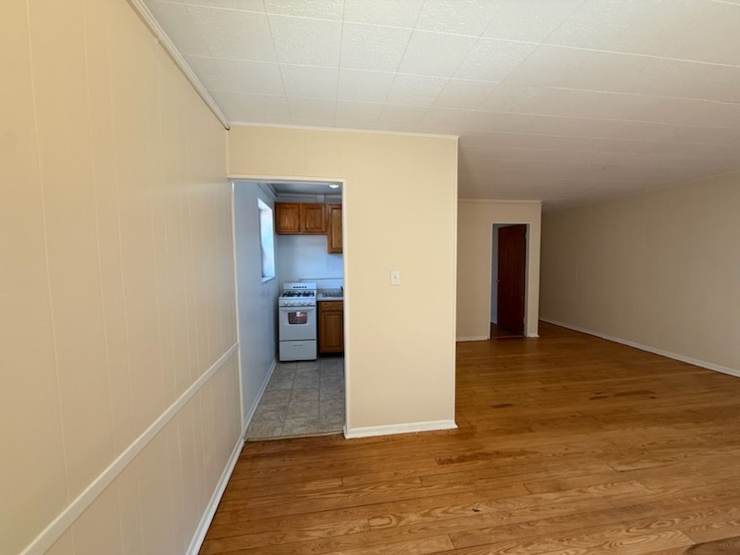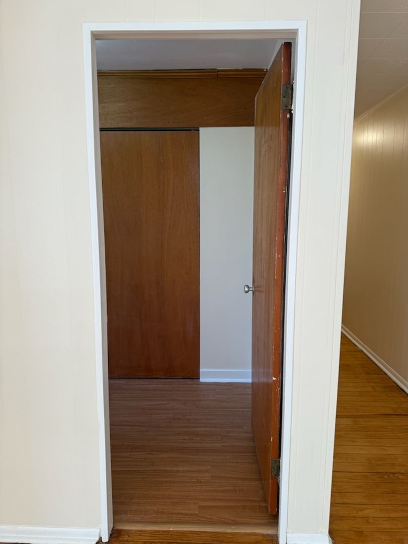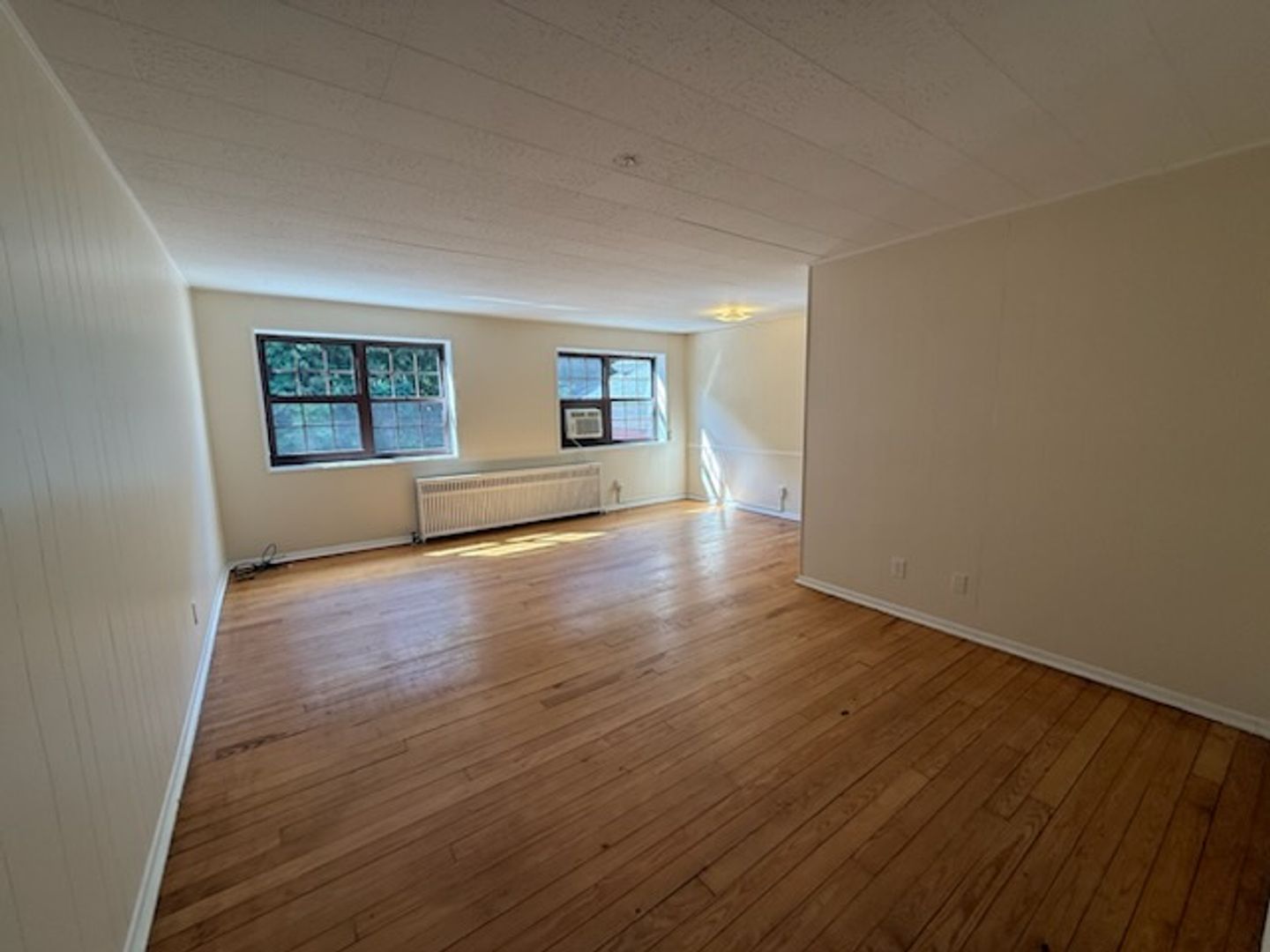 This studio apartment features beautiful hardwood floors and plenty of room for storage.