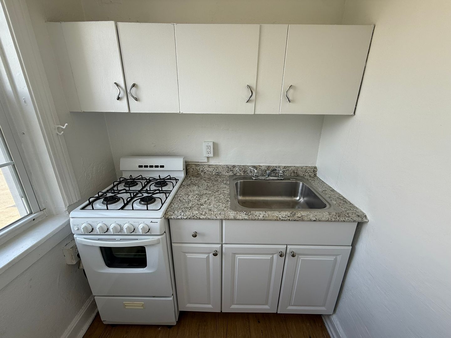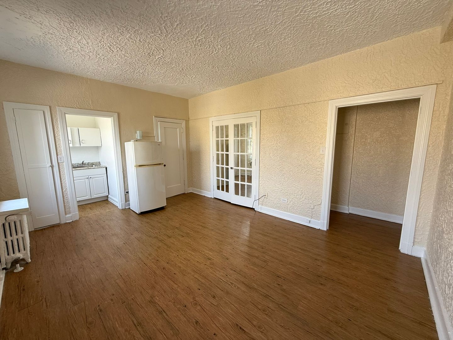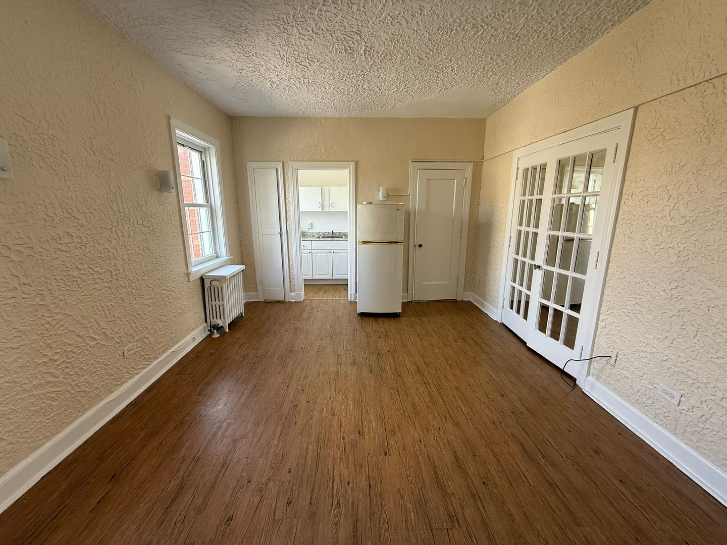 This studio apartment features beautiful hardwood floors and lots of natural light.
